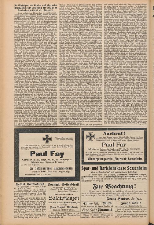 Regionale Zeitungen aus der Zeit des Ersten Weltkrieges