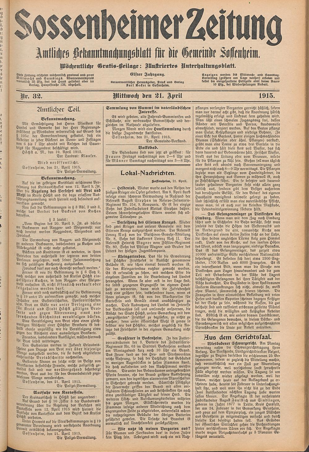 Regionale Zeitungen aus der Zeit des Ersten Weltkrieges