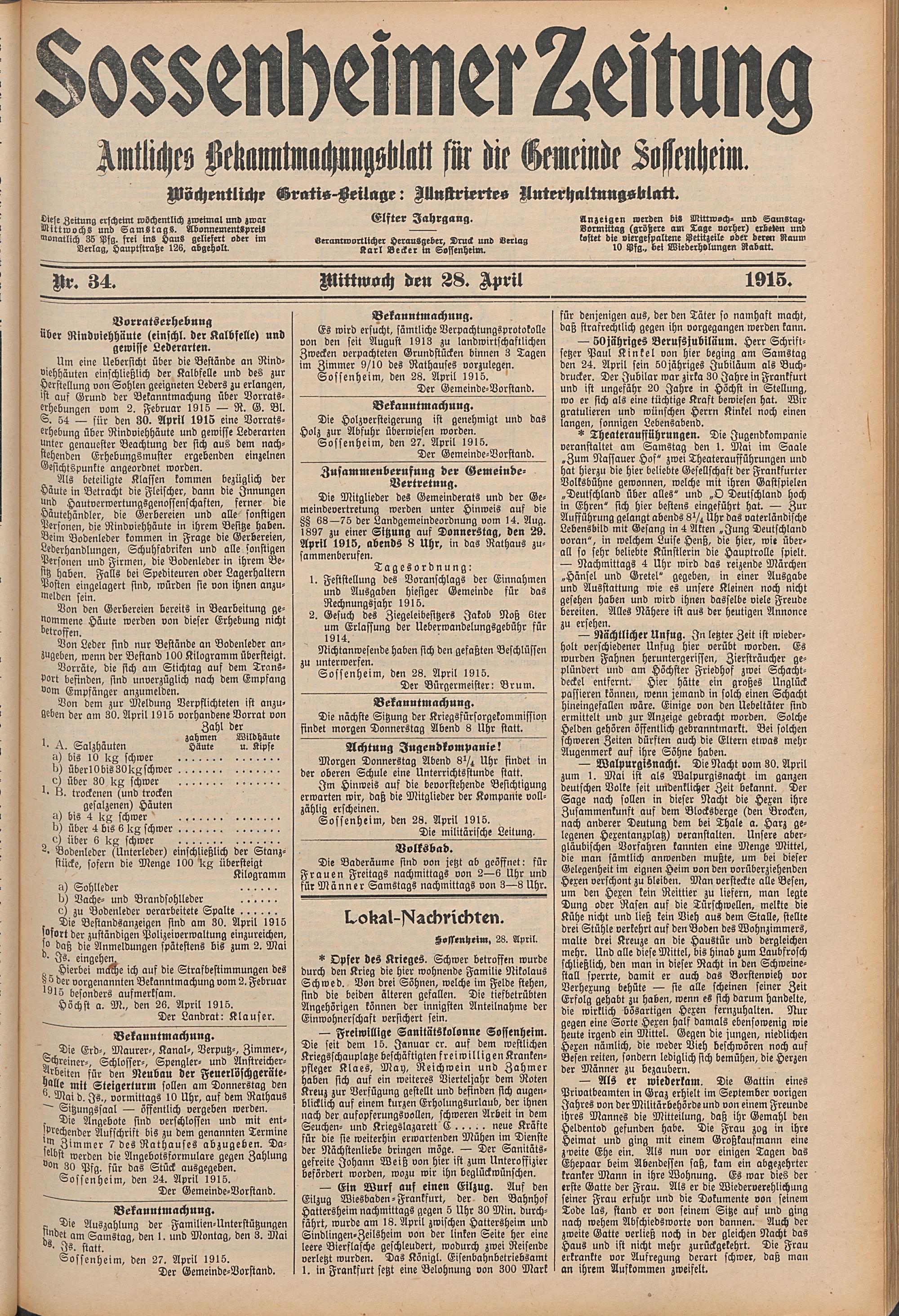 Sossenheimer Zeitung. 1906-1927