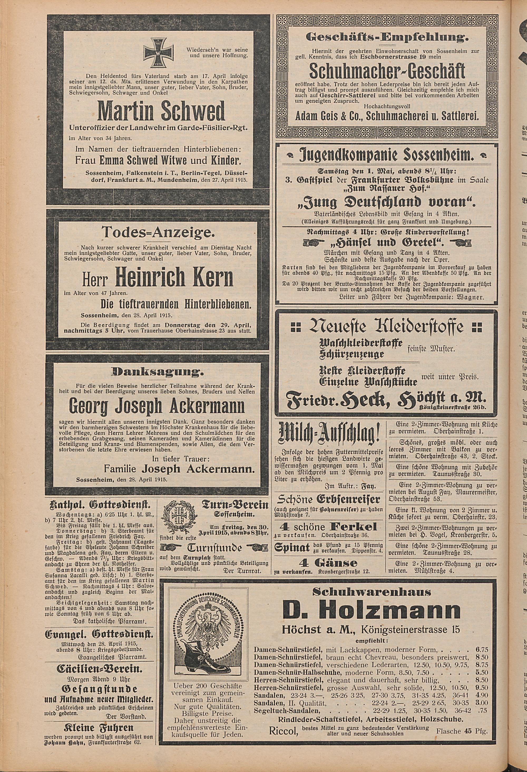 Regionale Zeitungen aus der Zeit des Ersten Weltkrieges