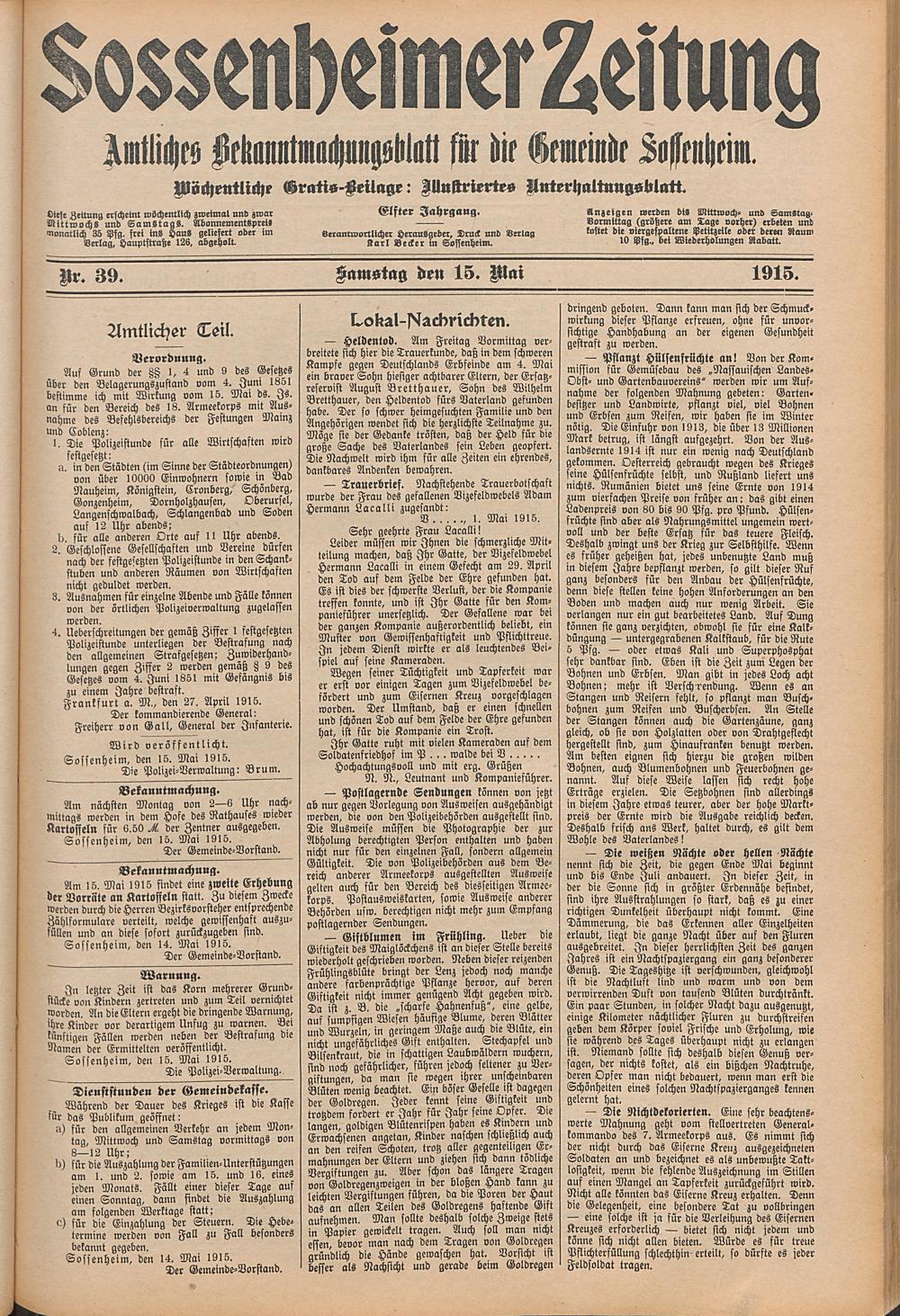 Sossenheimer Zeitung. 1906-1927