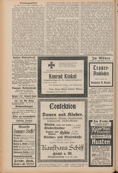 Regionale Zeitungen aus der Zeit des Ersten Weltkrieges