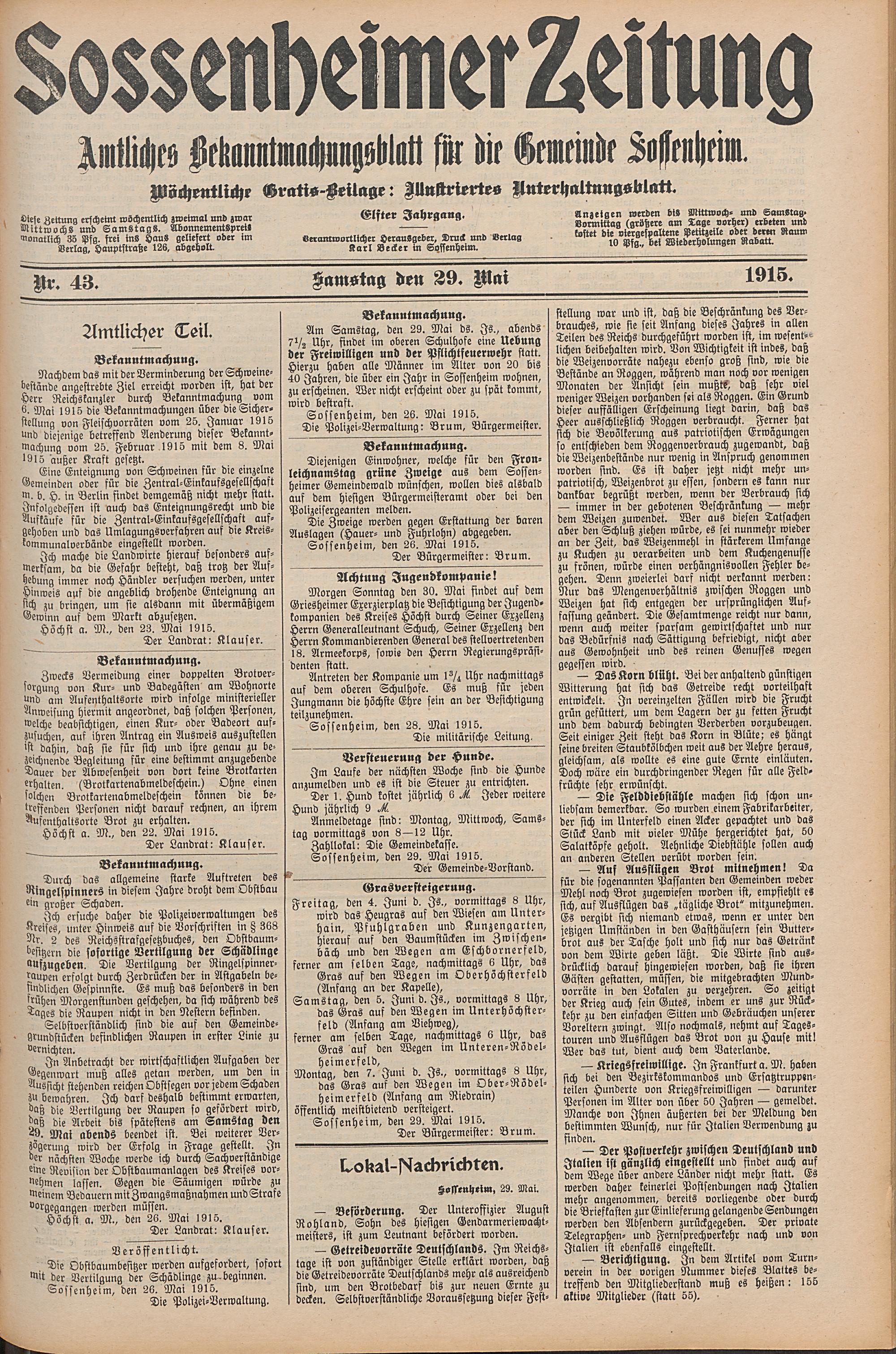 Regionale Zeitungen aus der Zeit des Ersten Weltkrieges