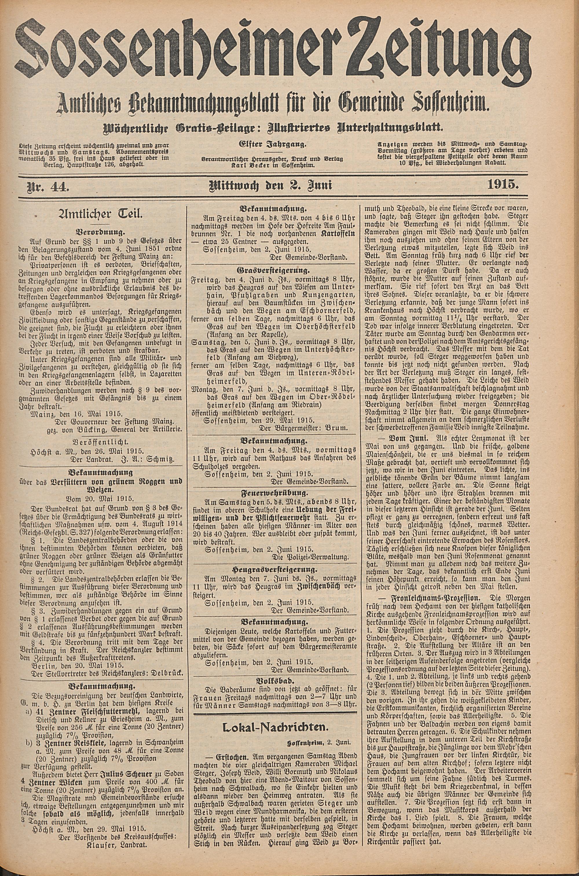 Sossenheimer Zeitung. 1906-1927