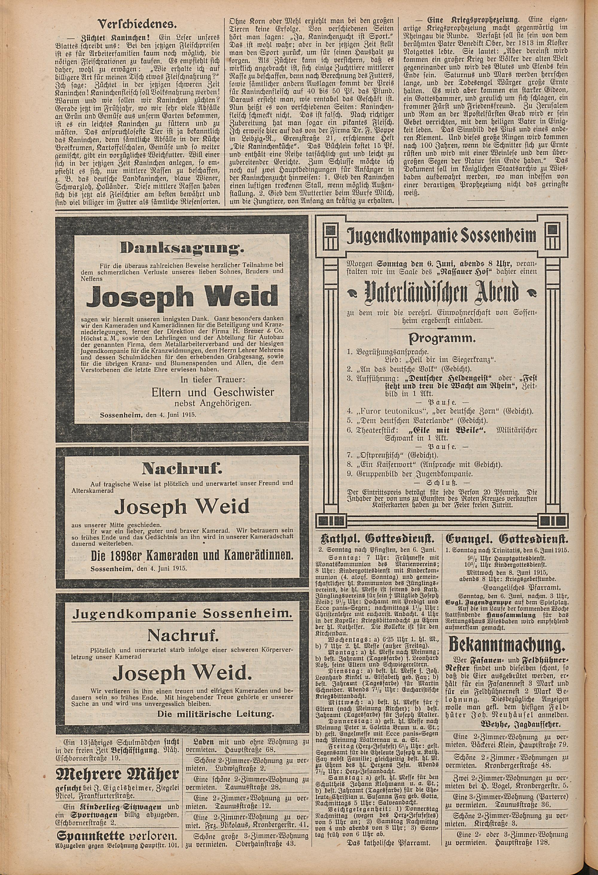 Regionale Zeitungen aus der Zeit des Ersten Weltkrieges