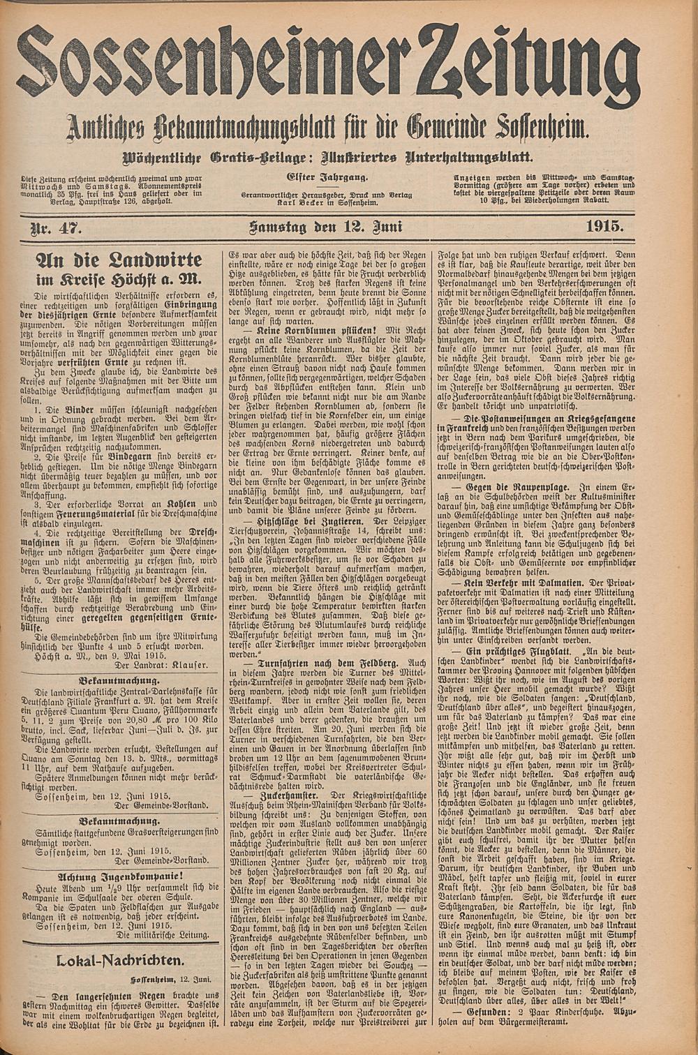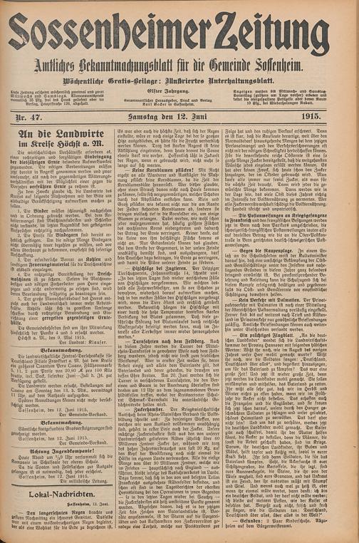 Regionale Zeitungen aus der Zeit des Ersten Weltkrieges