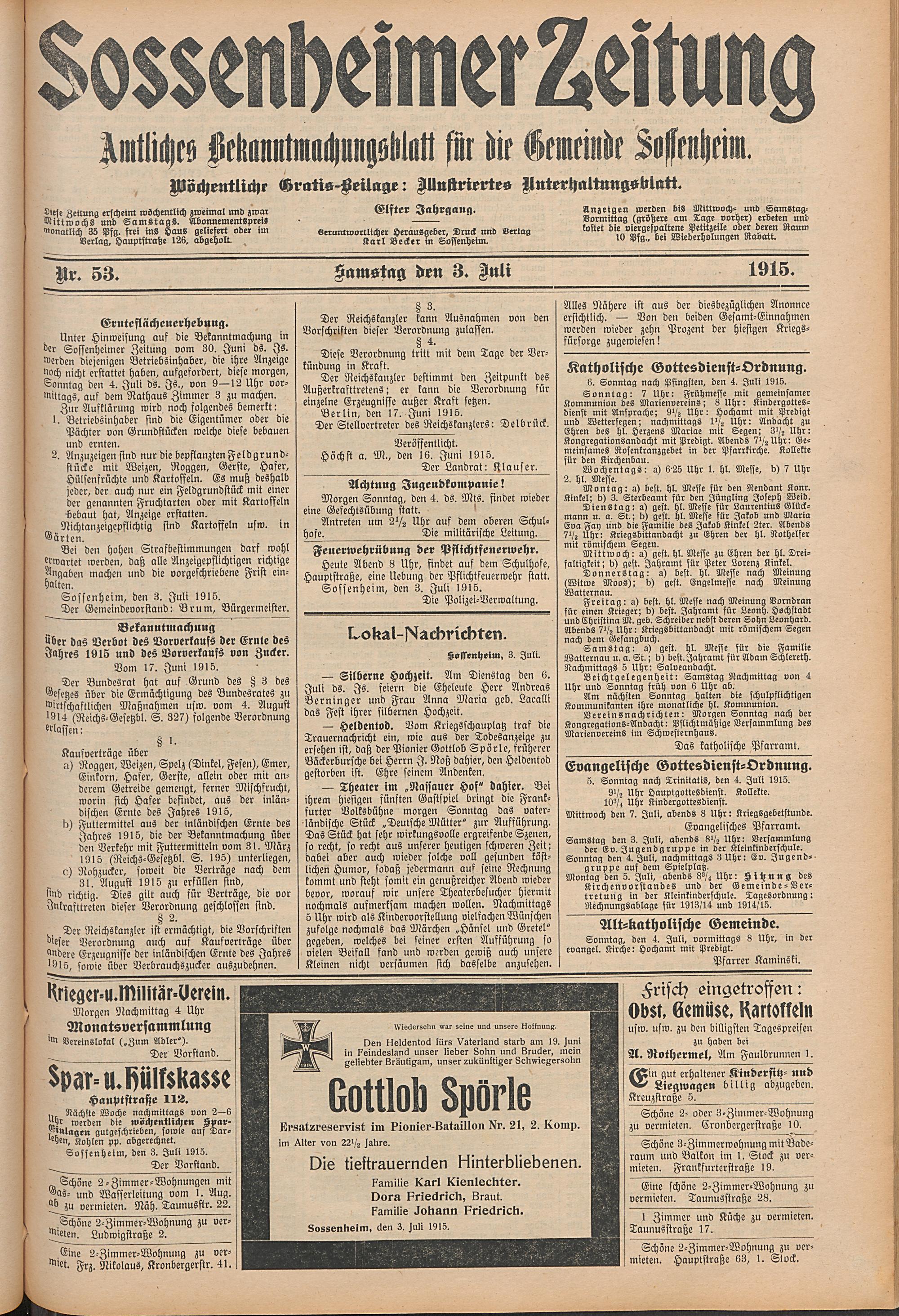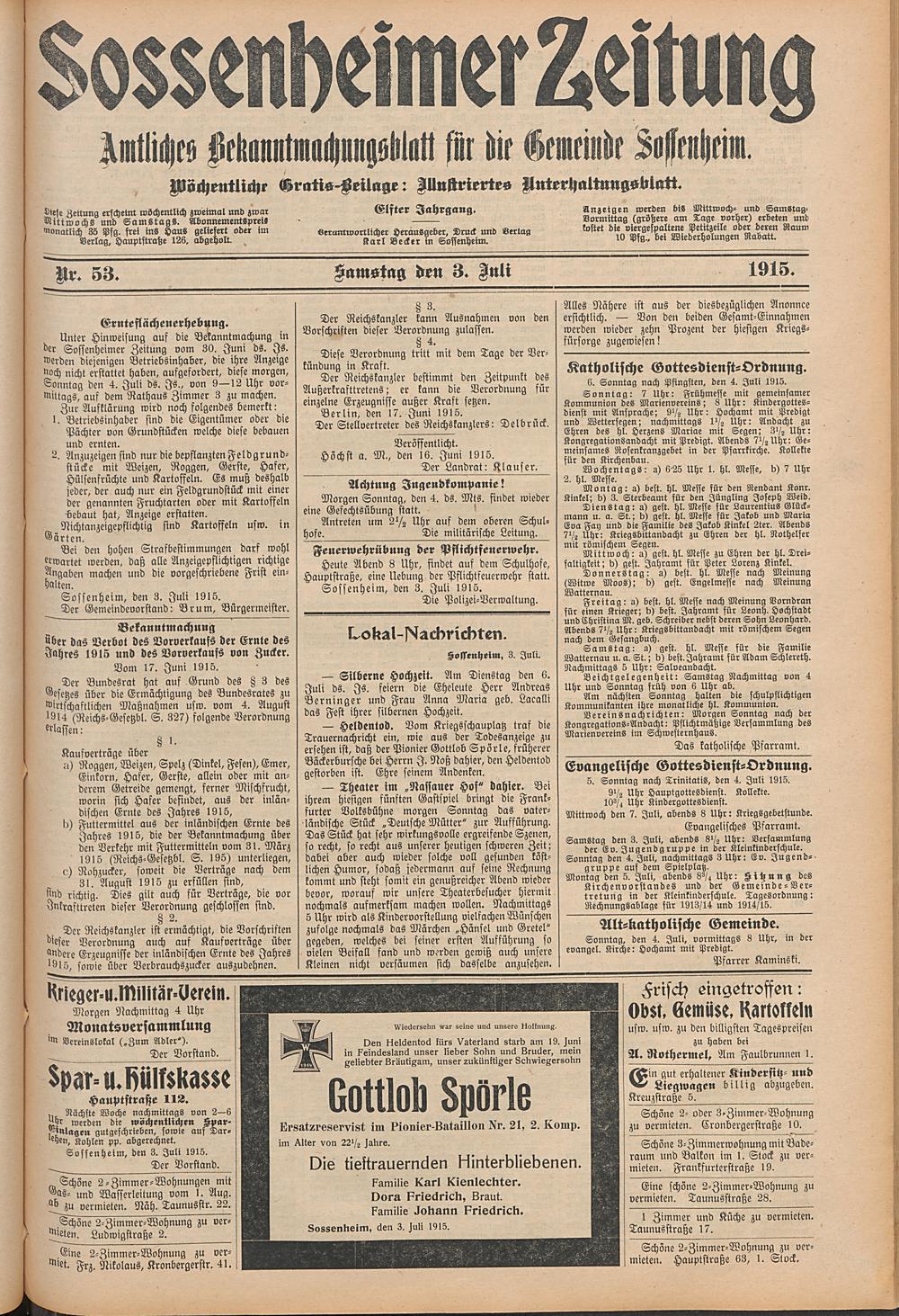 Sossenheimer Zeitung. 1906-1927