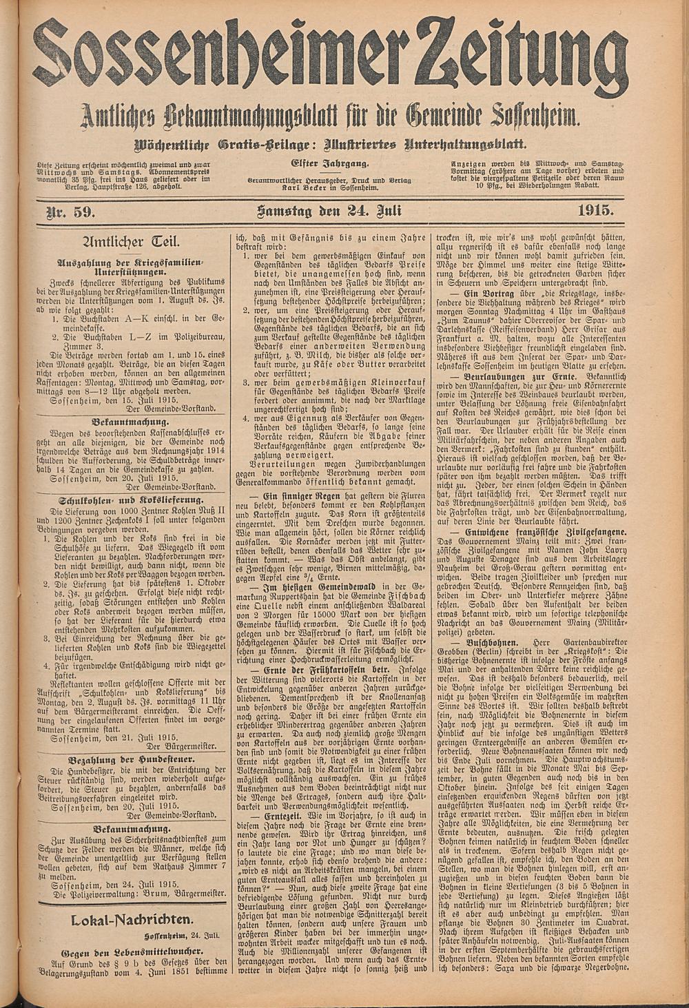 Sossenheimer Zeitung. 1906-1927