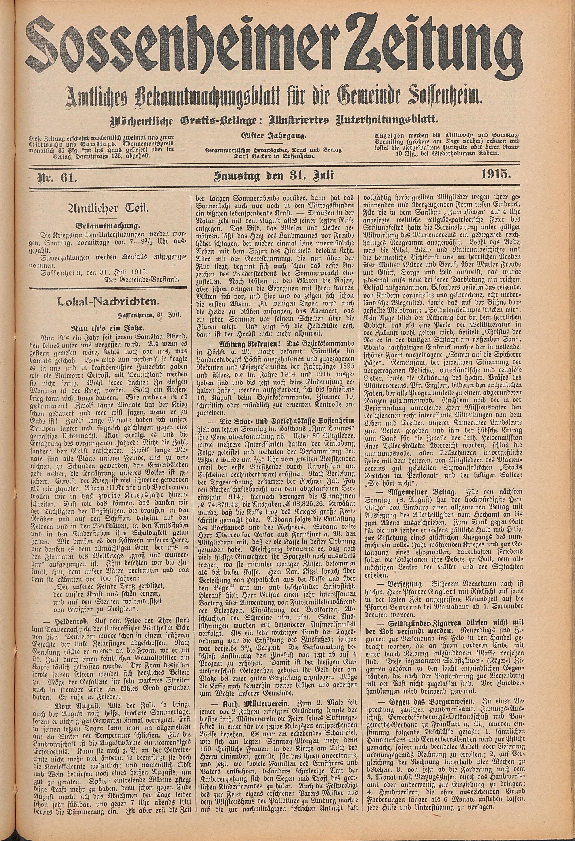 Regionale Zeitungen aus der Zeit des Ersten Weltkrieges