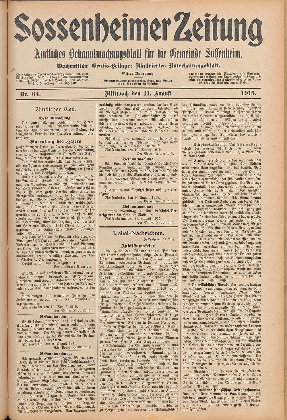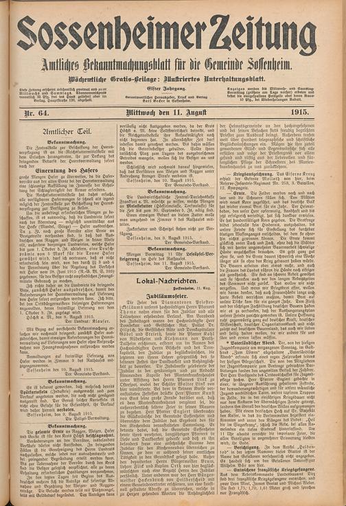 Regionale Zeitungen aus der Zeit des Ersten Weltkrieges
