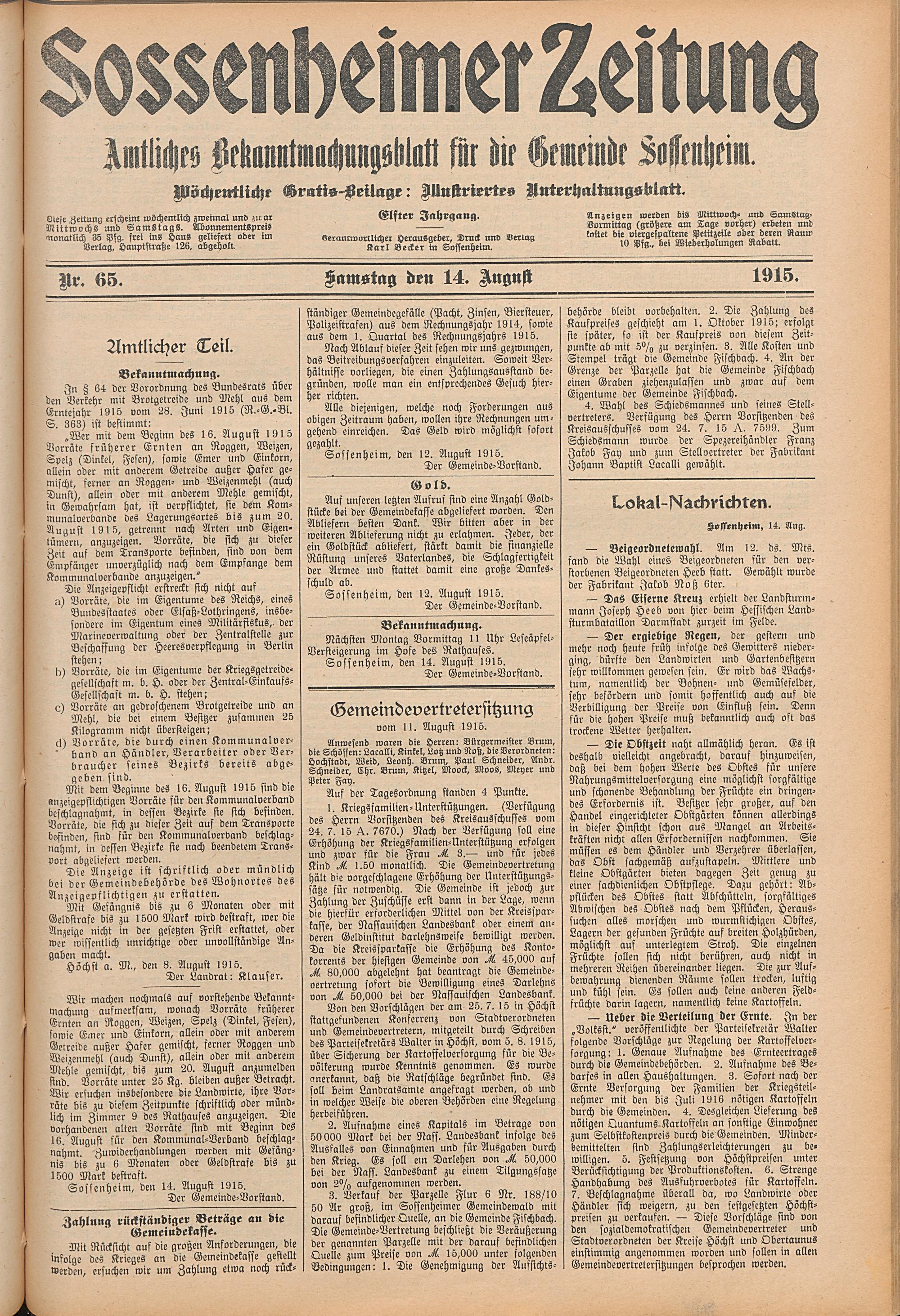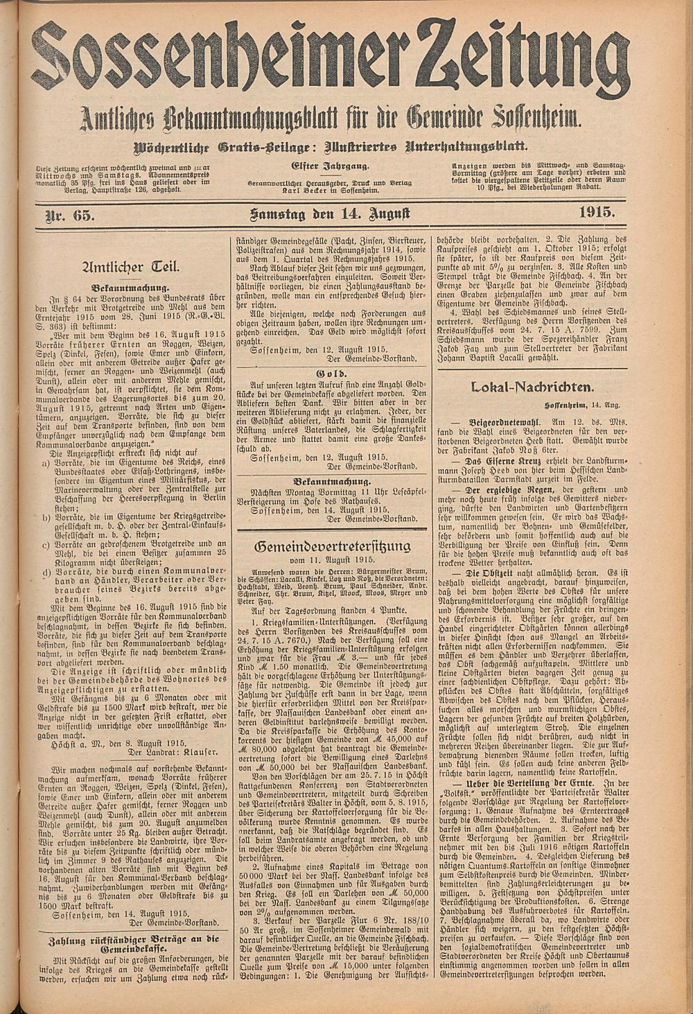 Sossenheimer Zeitung. 1906-1927
