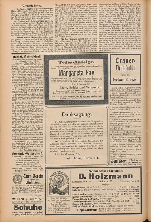 Regionale Zeitungen aus der Zeit des Ersten Weltkrieges