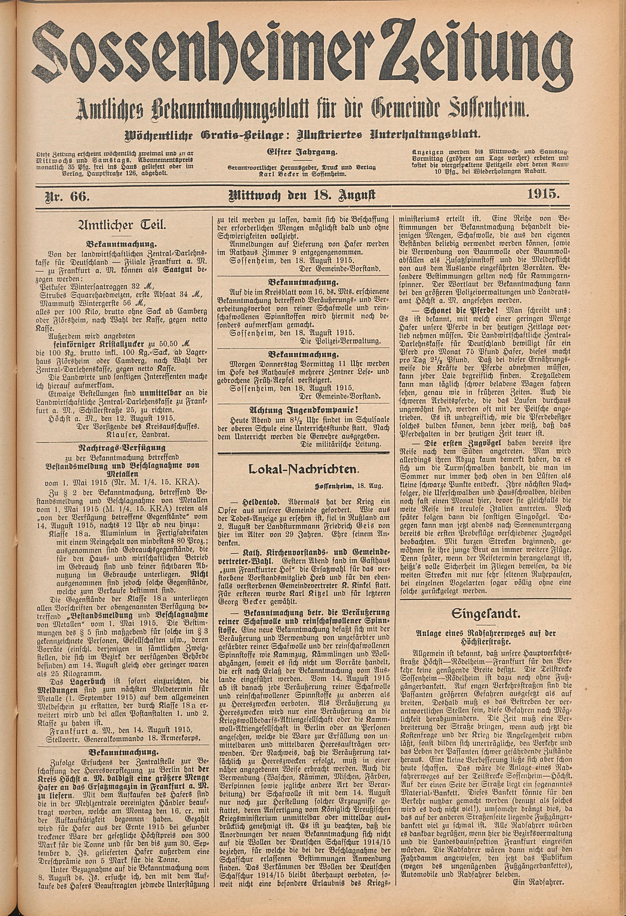 Sossenheimer Zeitung. 1906-1927