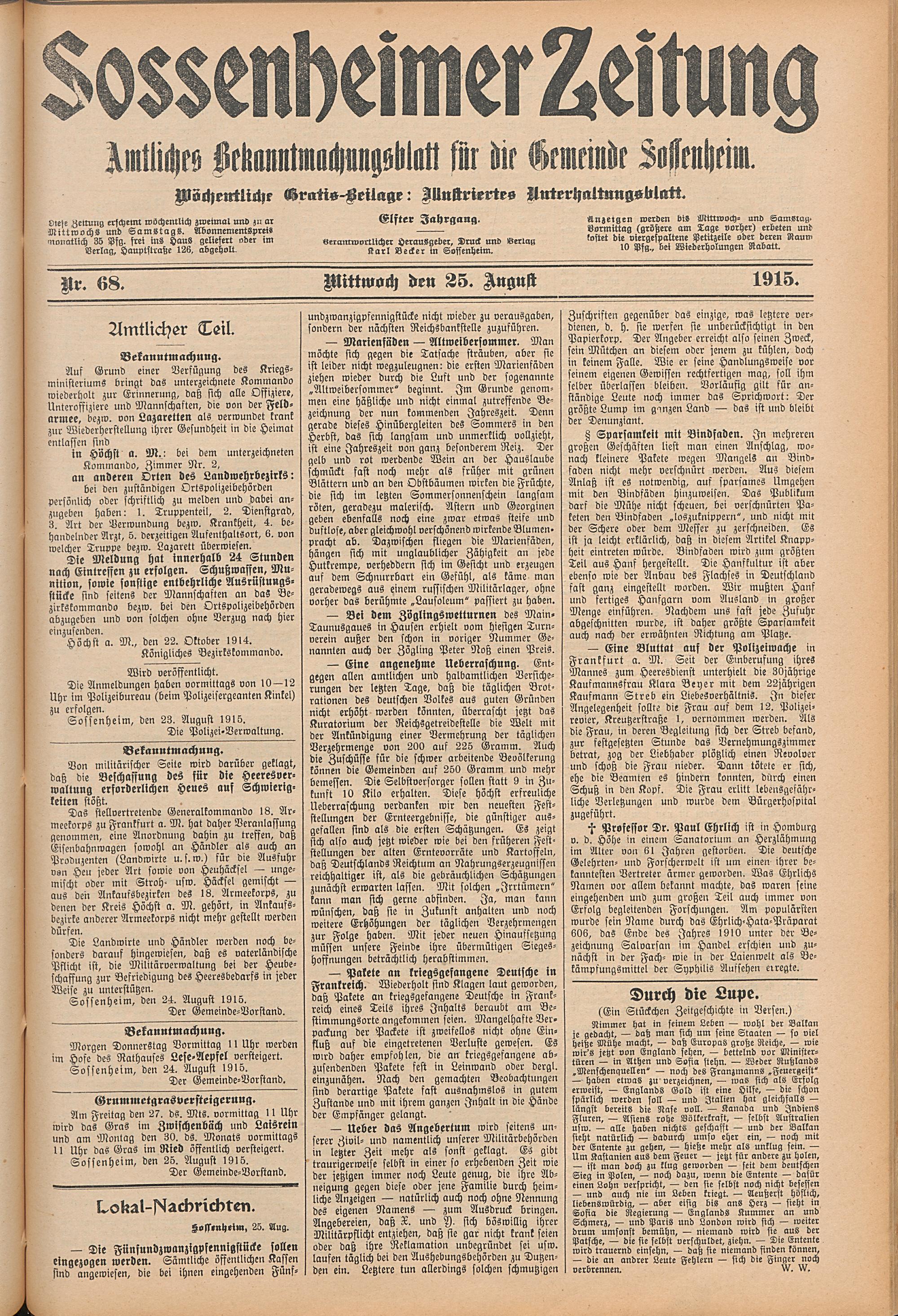 Regionale Zeitungen aus der Zeit des Ersten Weltkrieges