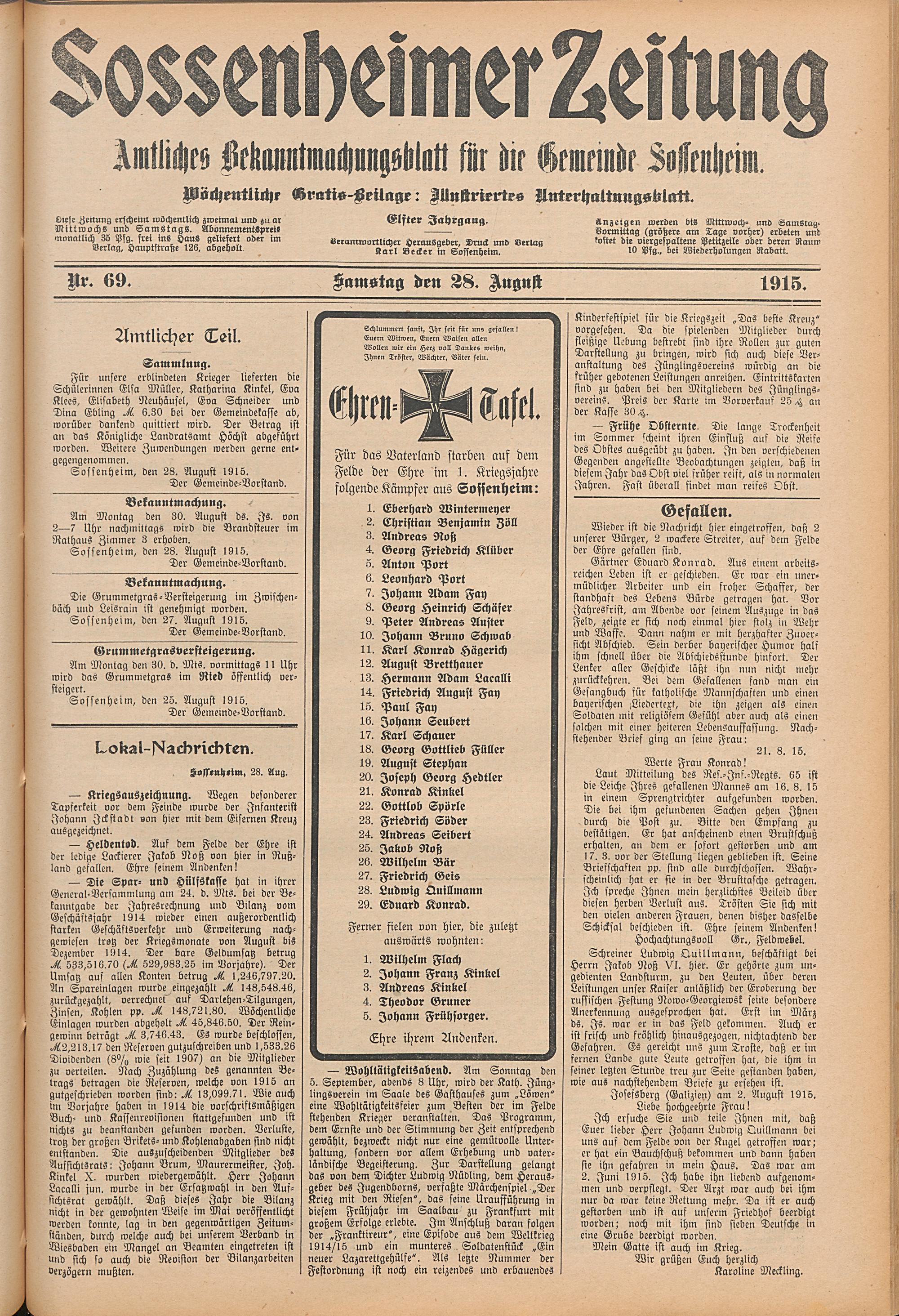 Regionale Zeitungen aus der Zeit des Ersten Weltkrieges