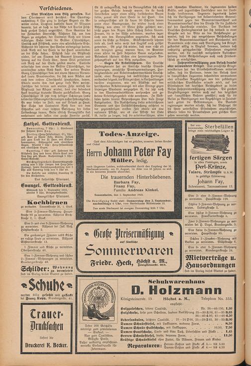 Regionale Zeitungen aus der Zeit des Ersten Weltkrieges