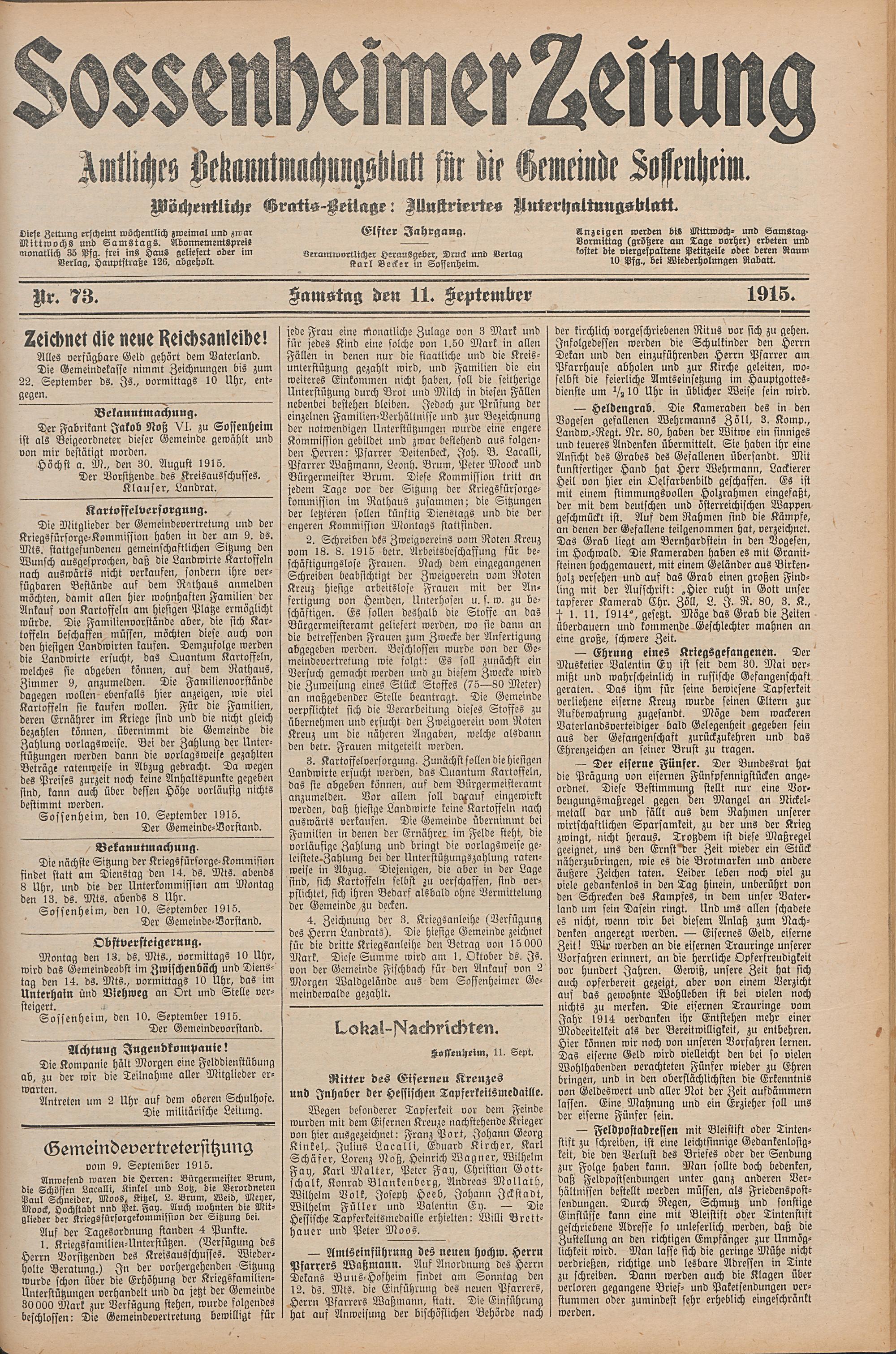 Regionale Zeitungen aus der Zeit des Ersten Weltkrieges