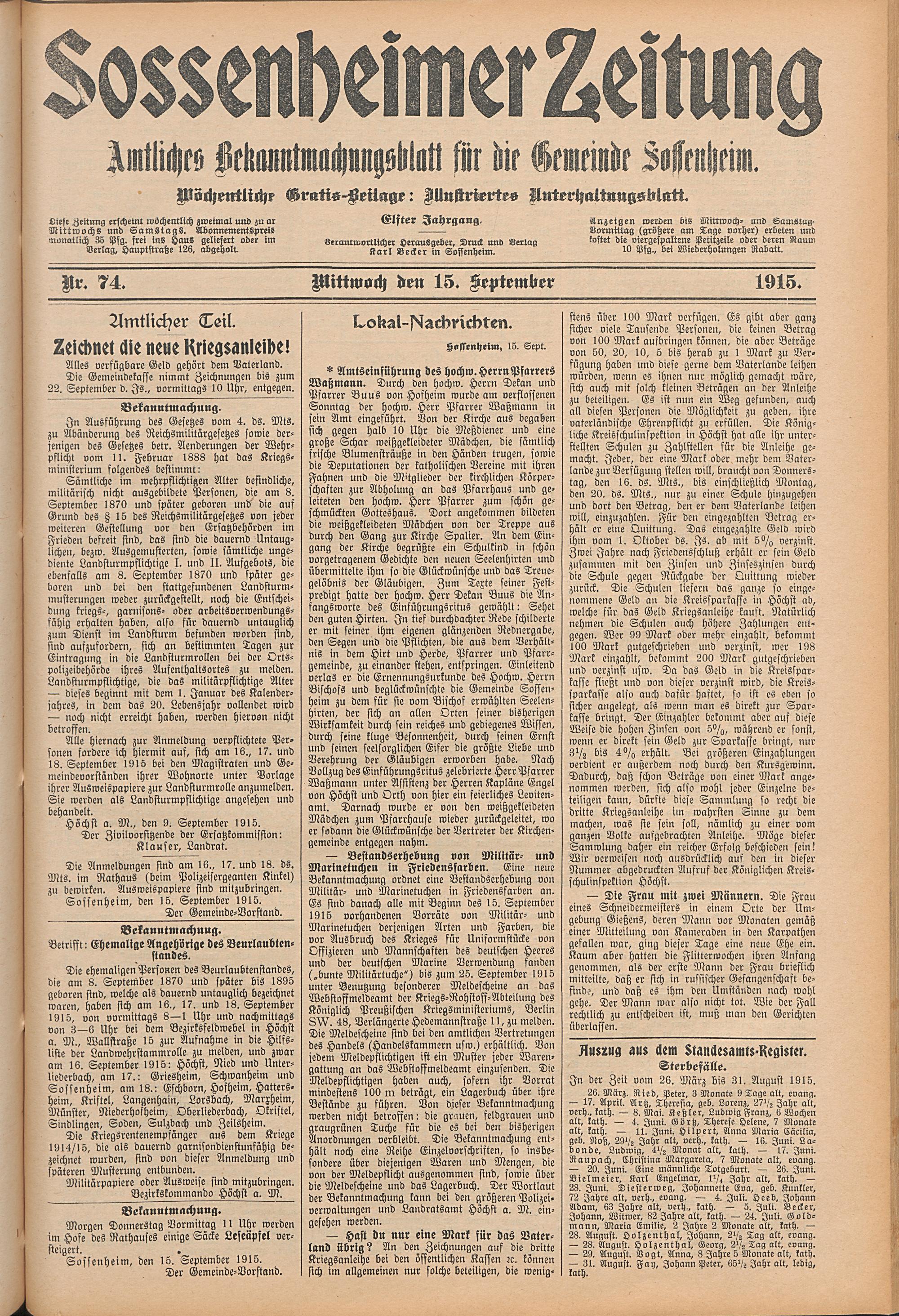 Sossenheimer Zeitung. 1906-1927