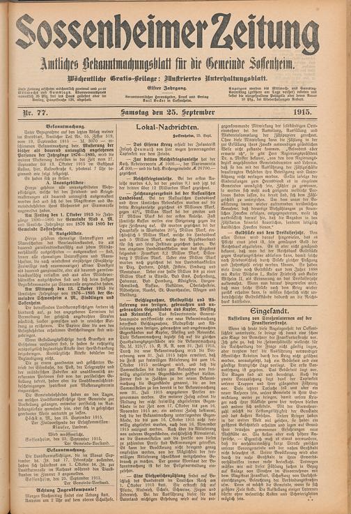 Regionale Zeitungen aus der Zeit des Ersten Weltkrieges