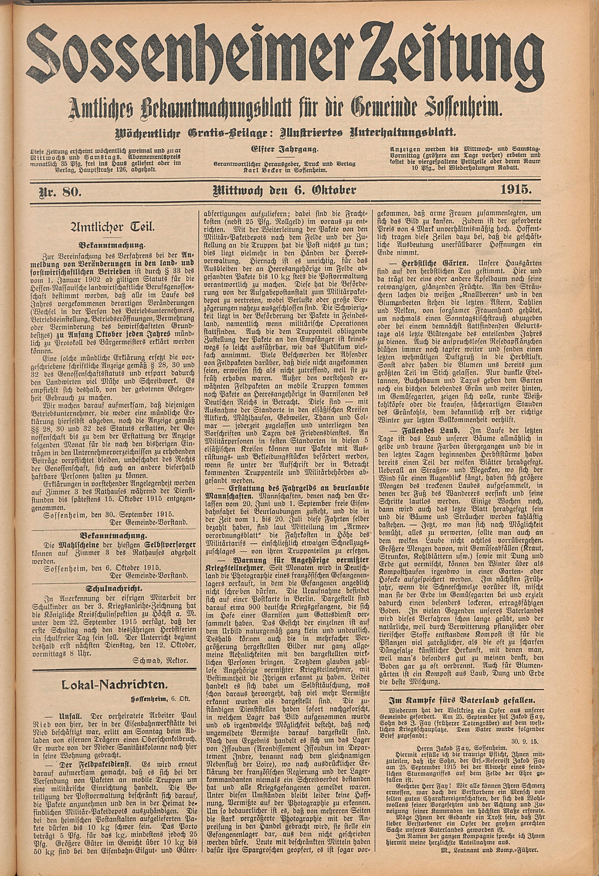 Regionale Zeitungen aus der Zeit des Ersten Weltkrieges