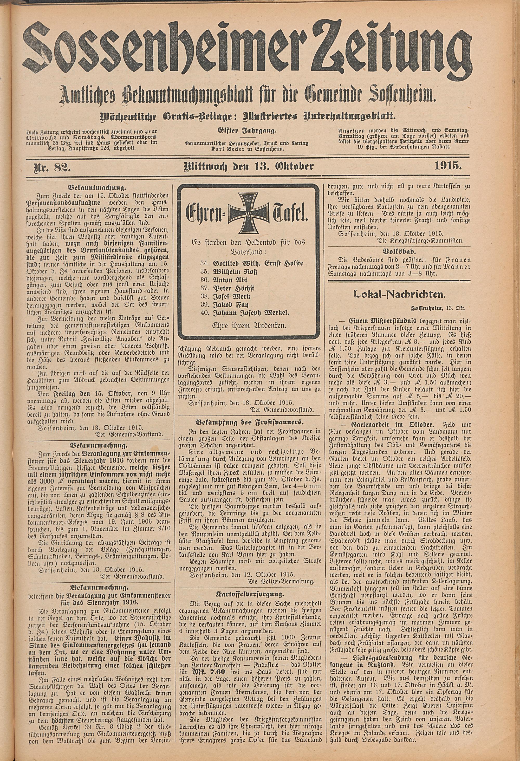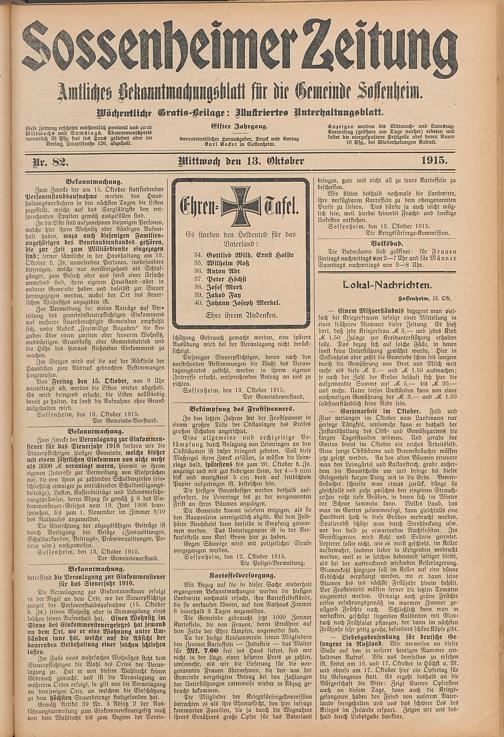 Regionale Zeitungen aus der Zeit des Ersten Weltkrieges