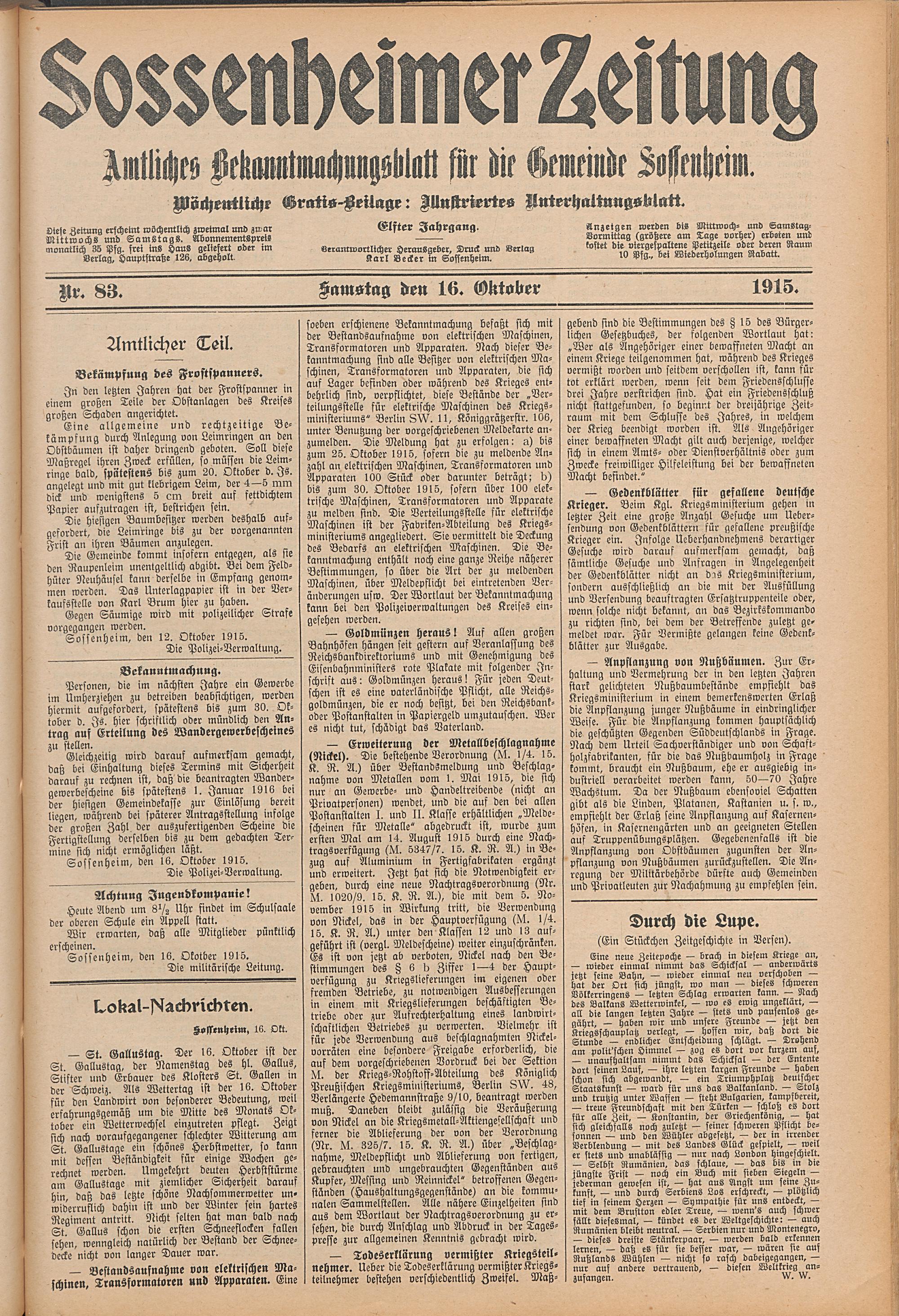 Regionale Zeitungen aus der Zeit des Ersten Weltkrieges