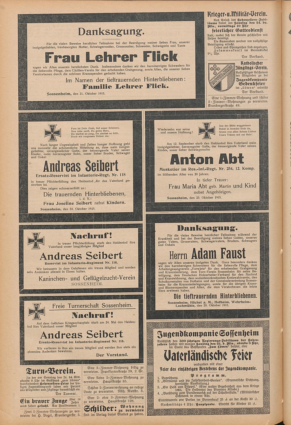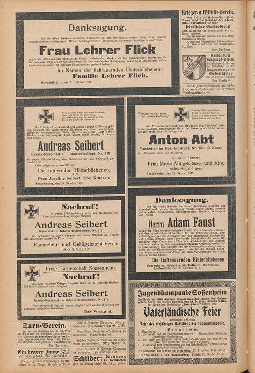 Regionale Zeitungen aus der Zeit des Ersten Weltkrieges