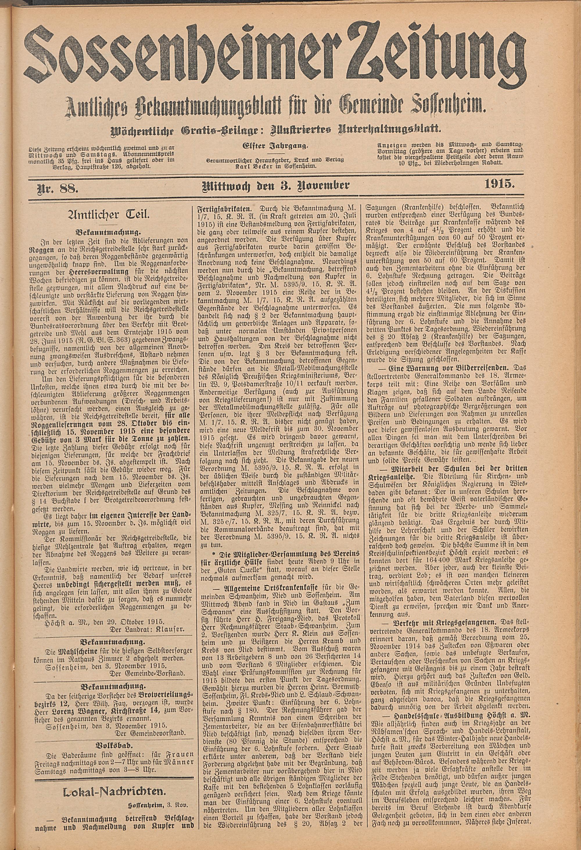 Regionale Zeitungen aus der Zeit des Ersten Weltkrieges