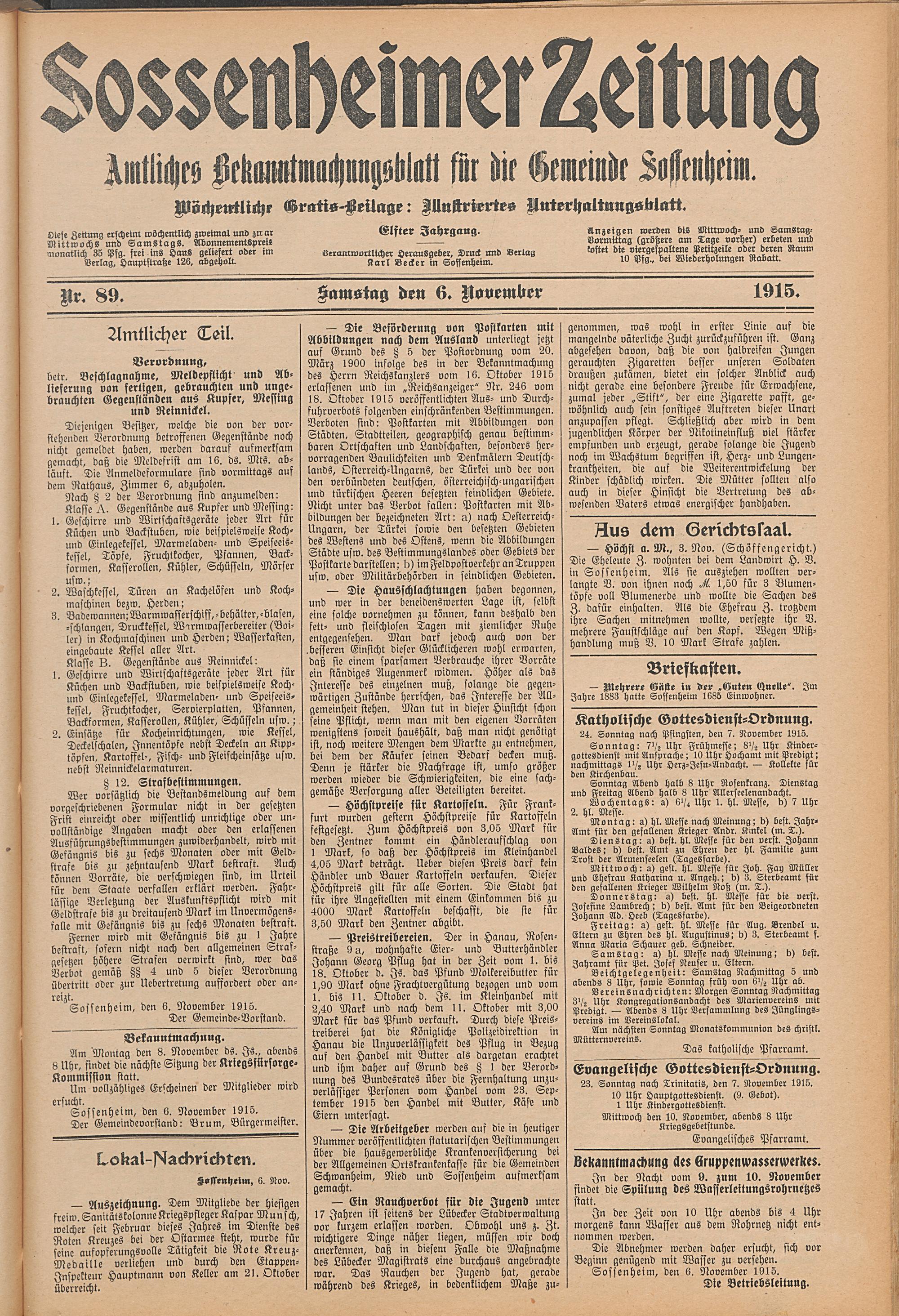 Regionale Zeitungen aus der Zeit des Ersten Weltkrieges