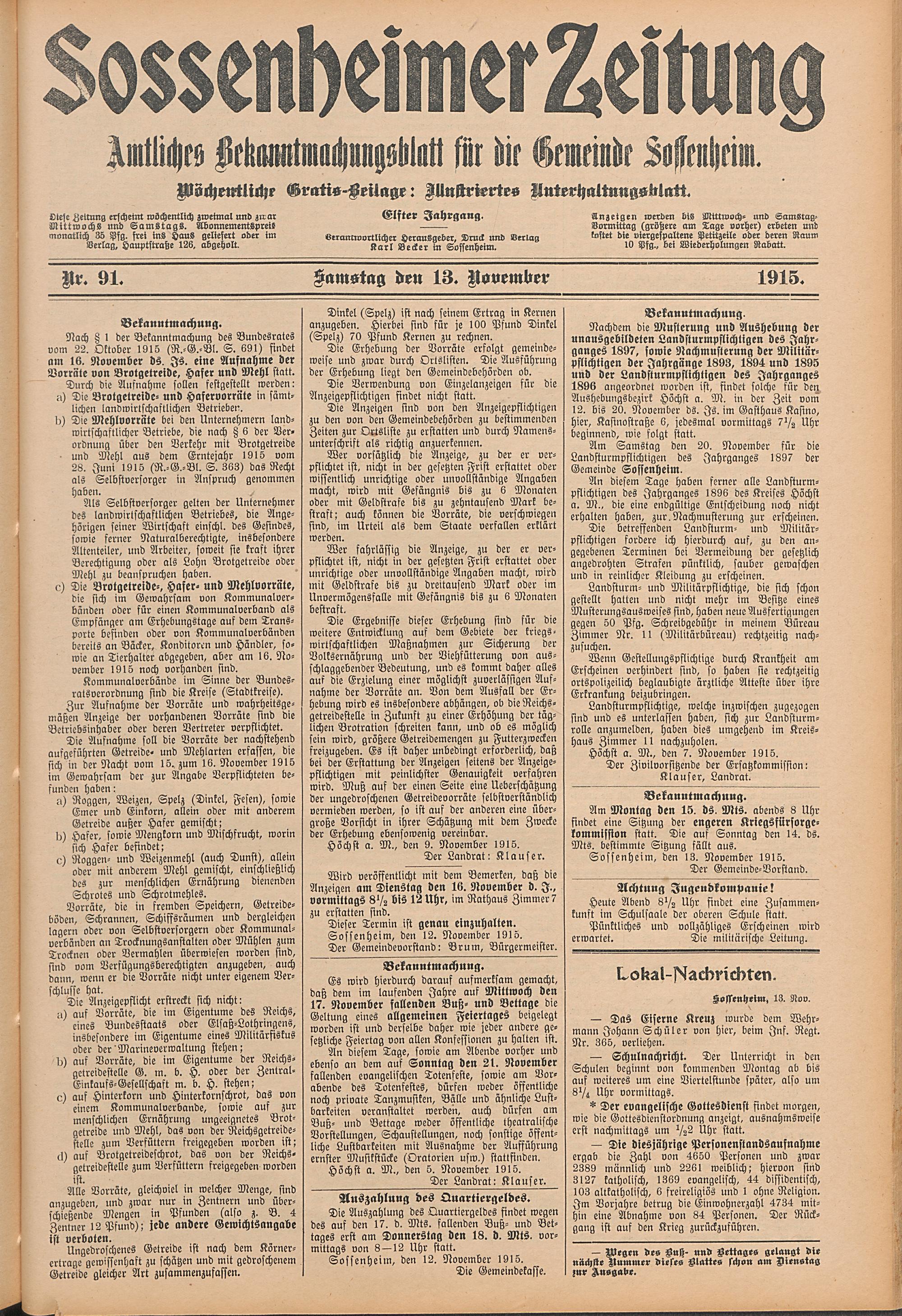 Sossenheimer Zeitung. 1906-1927