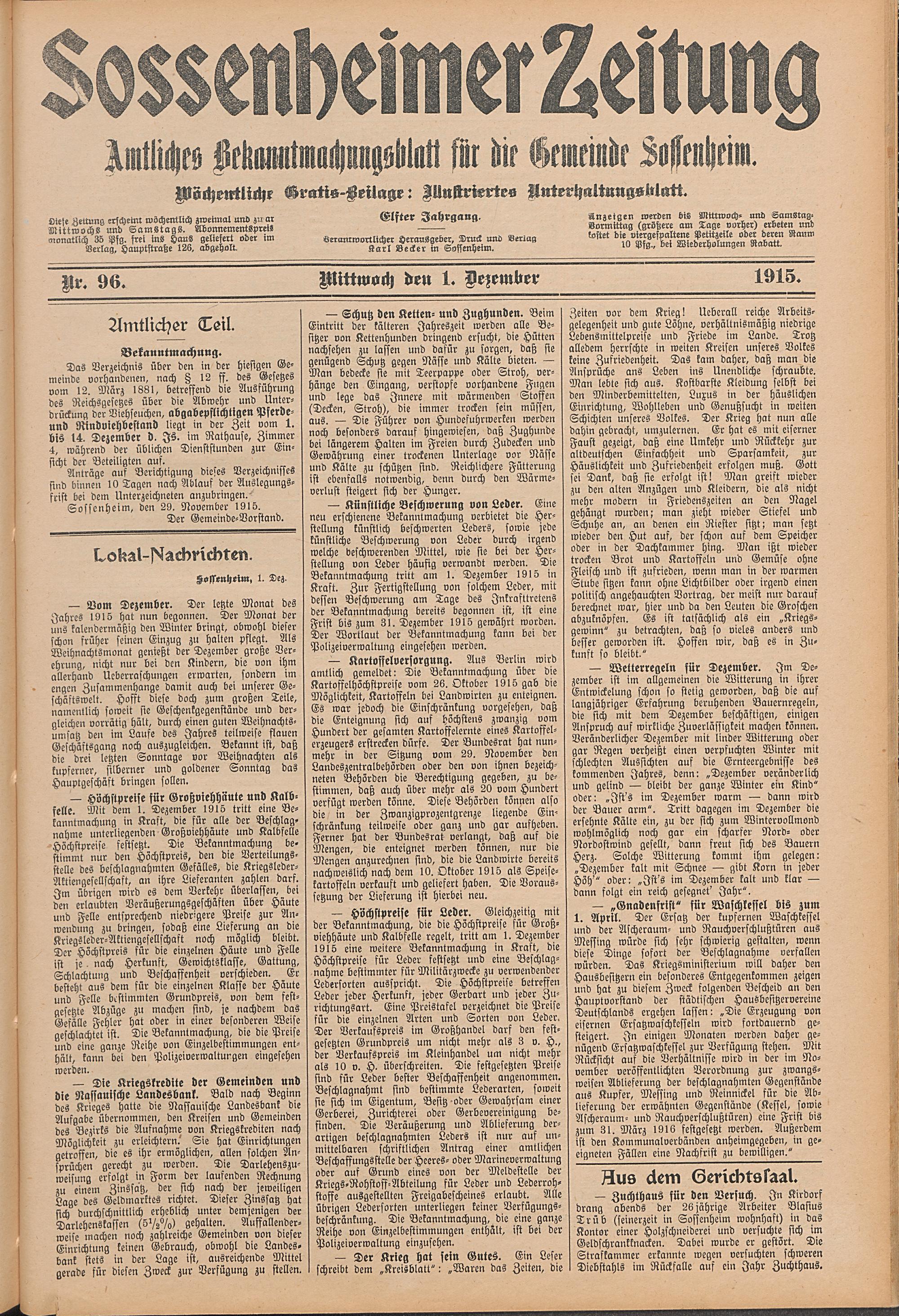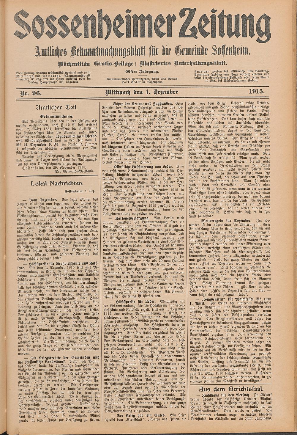 Regionale Zeitungen aus der Zeit des Ersten Weltkrieges
