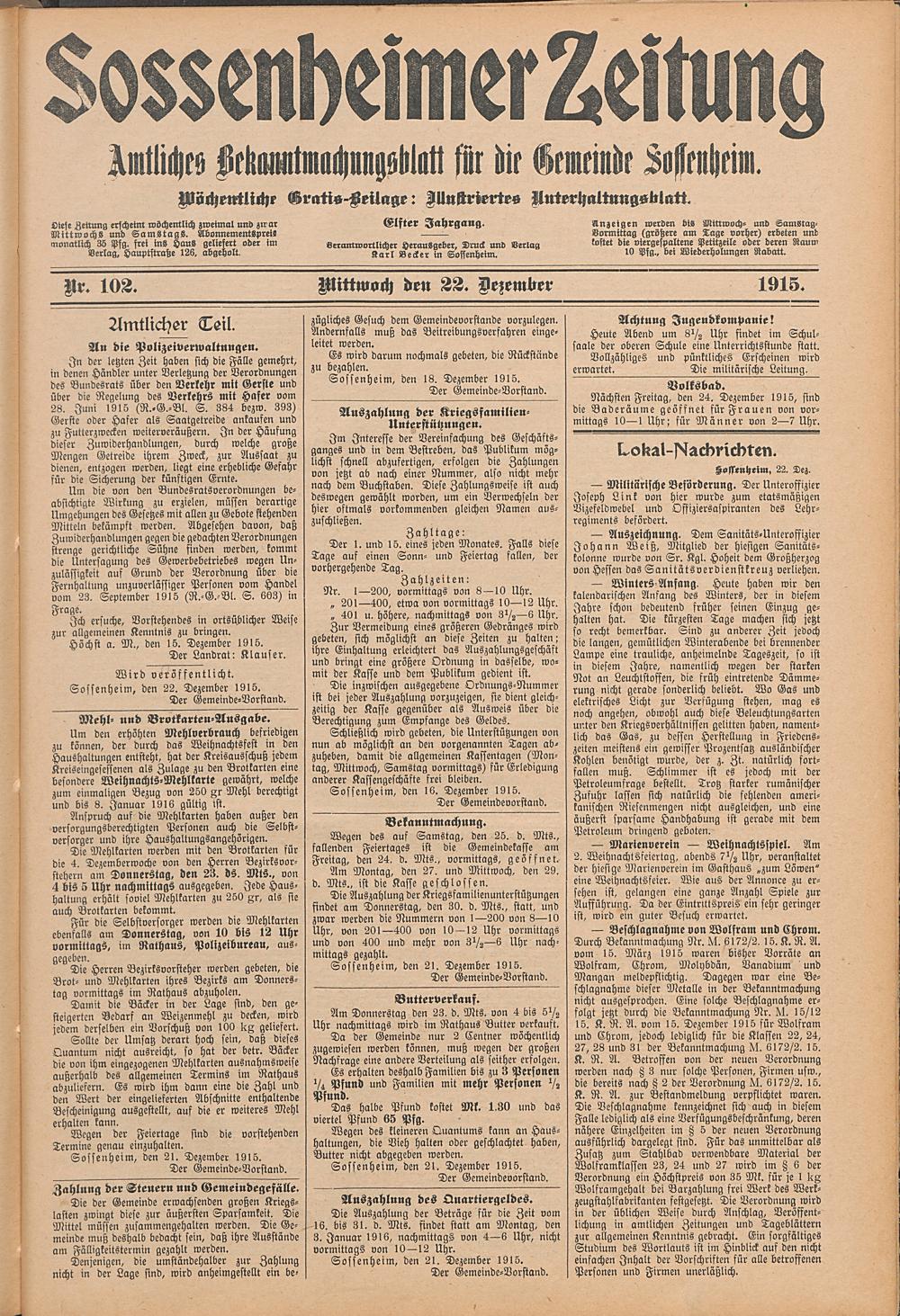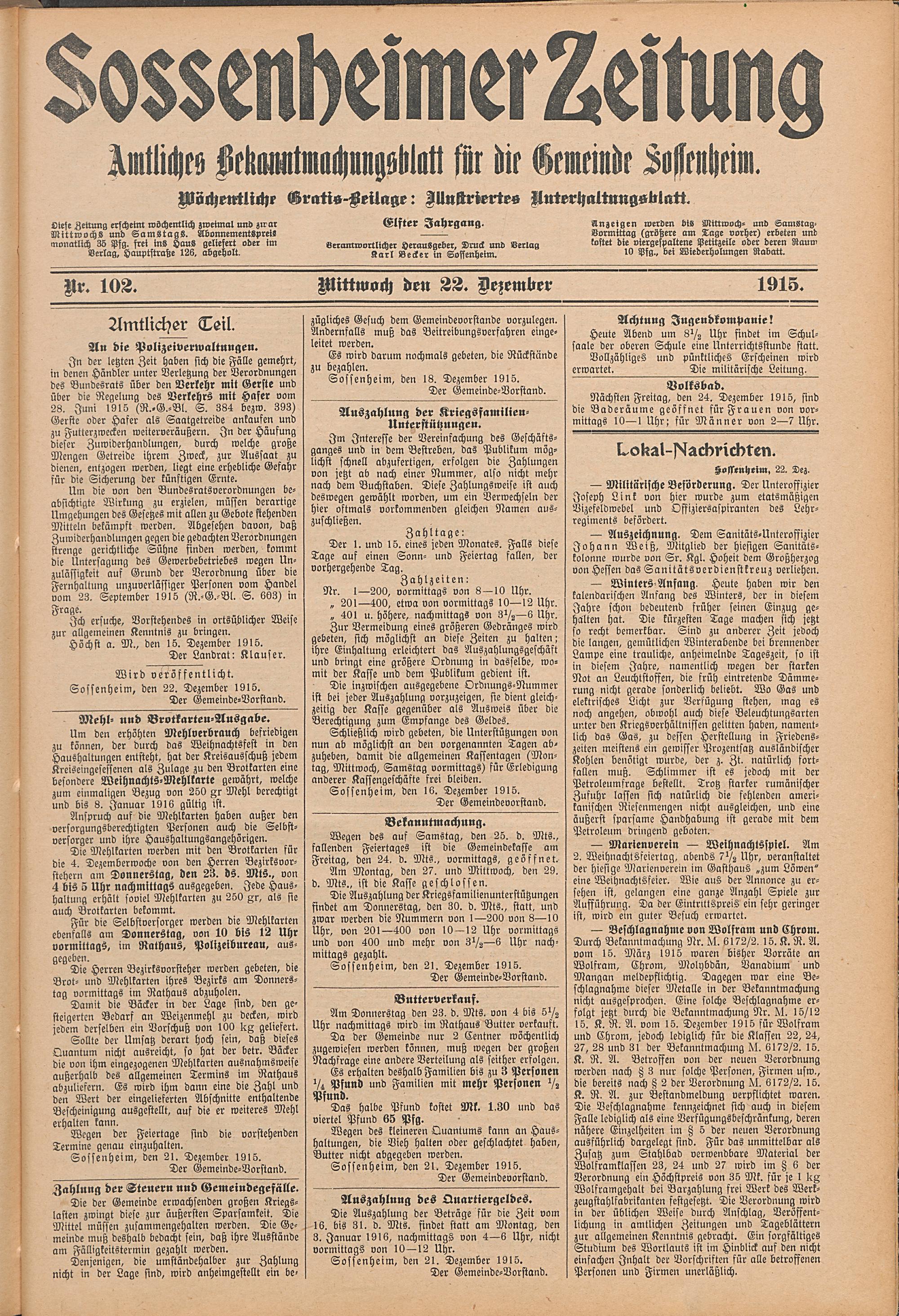 Sossenheimer Zeitung. 1906-1927