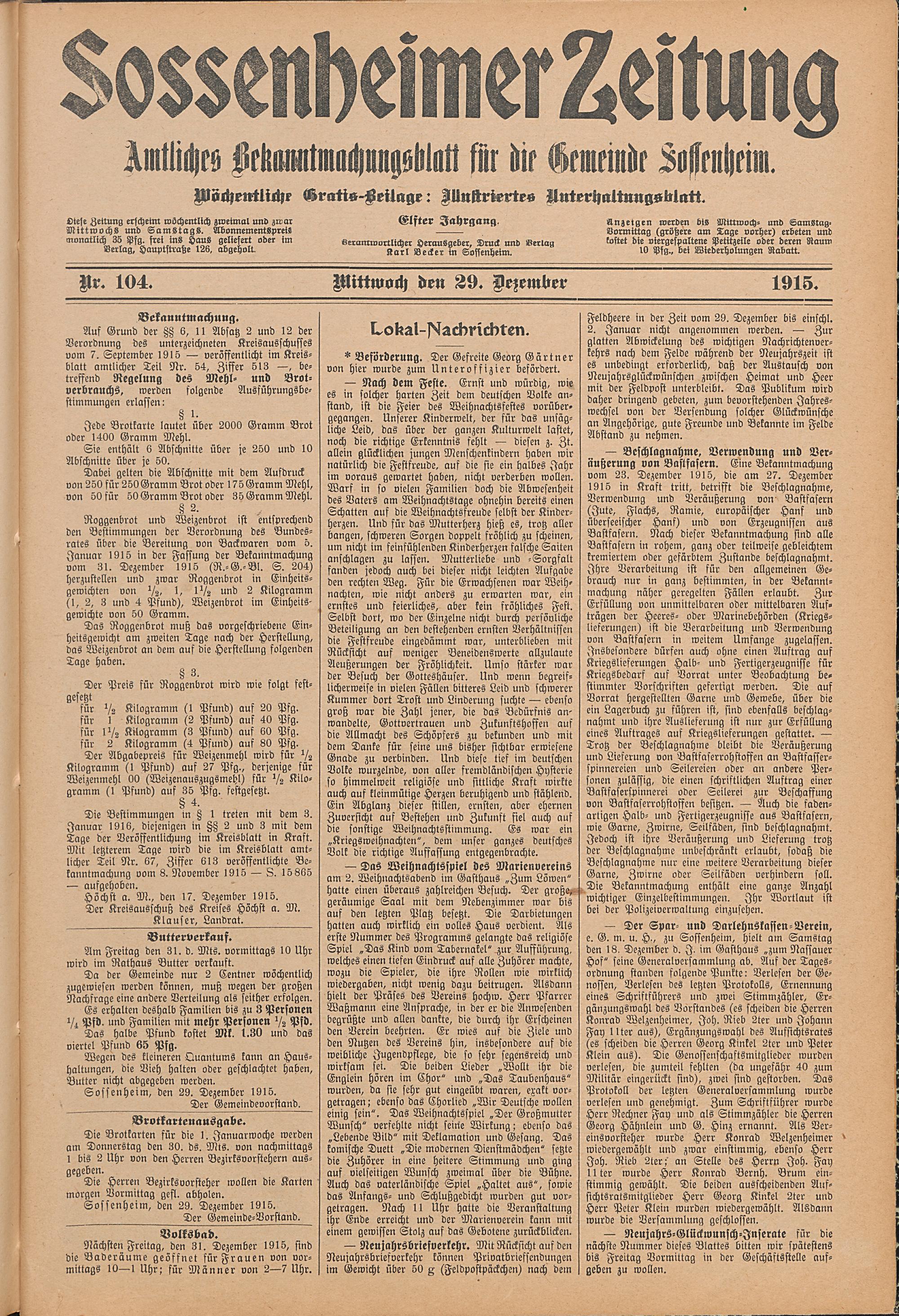 Sossenheimer Zeitung. 1906-1927