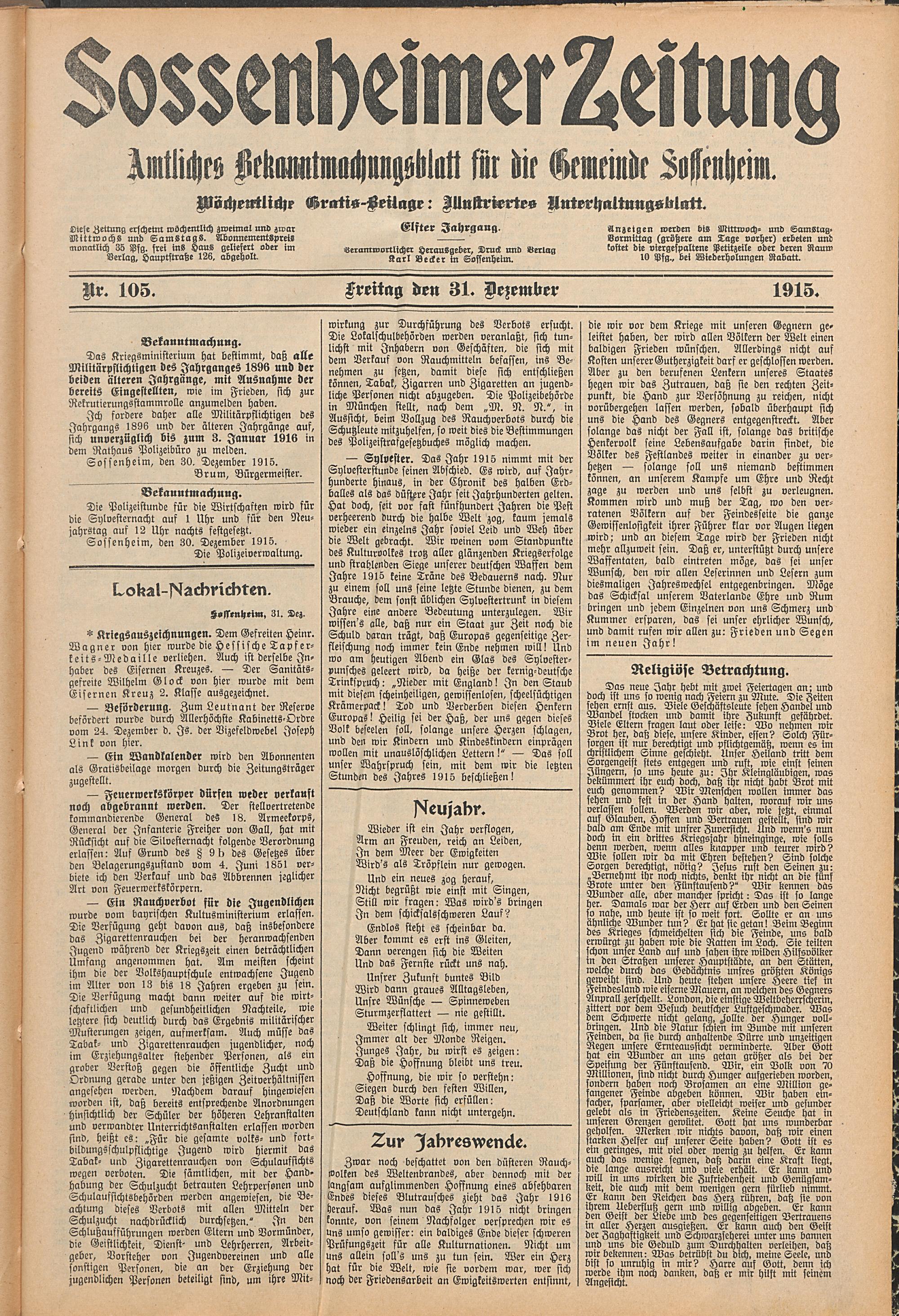 Sossenheimer Zeitung. 1906-1927