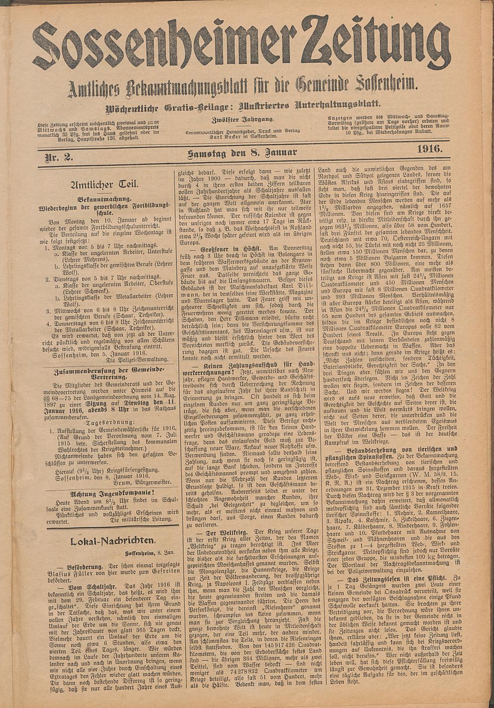 Sossenheimer Zeitung. 1906-1927