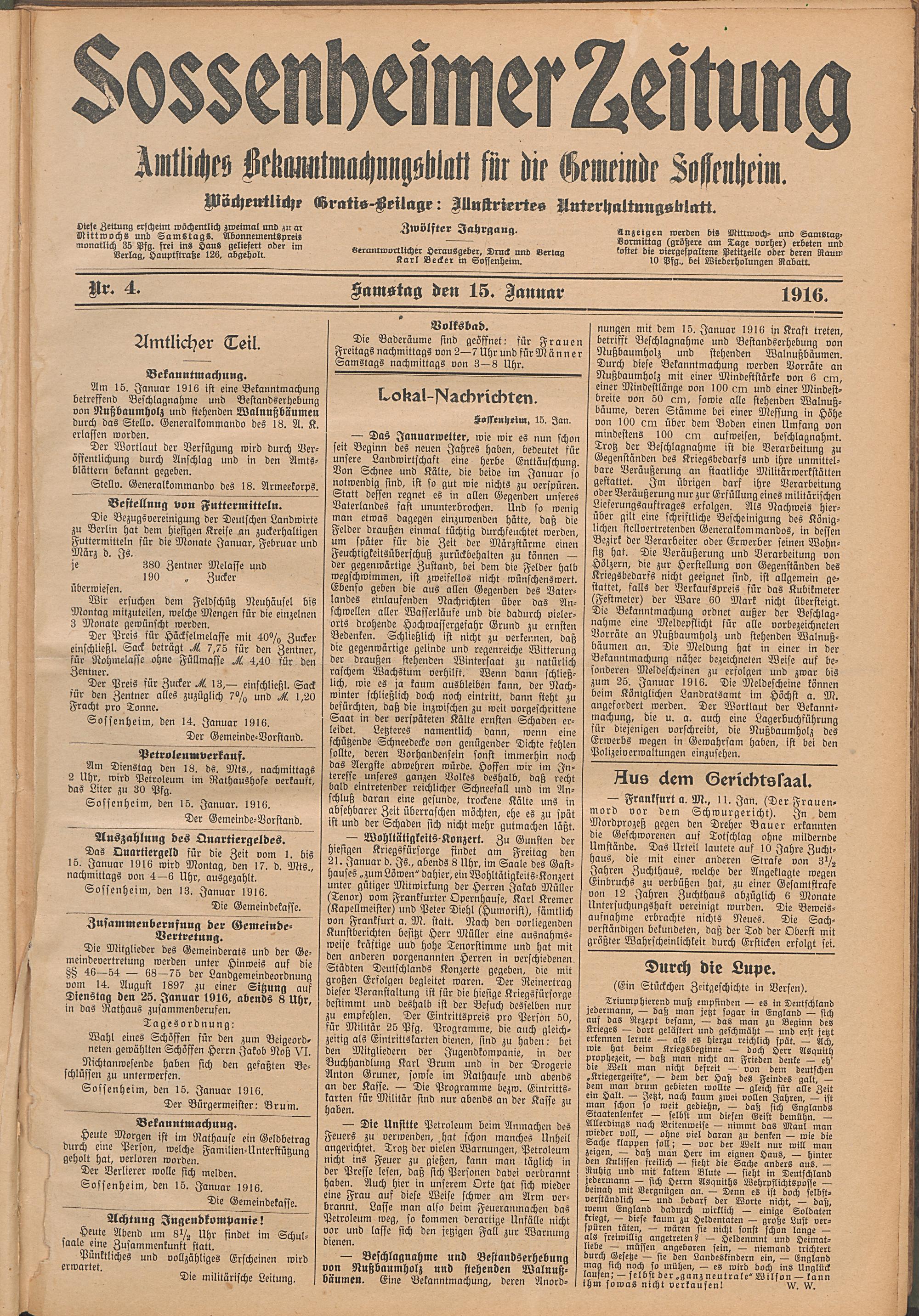 Regionale Zeitungen aus der Zeit des Ersten Weltkrieges