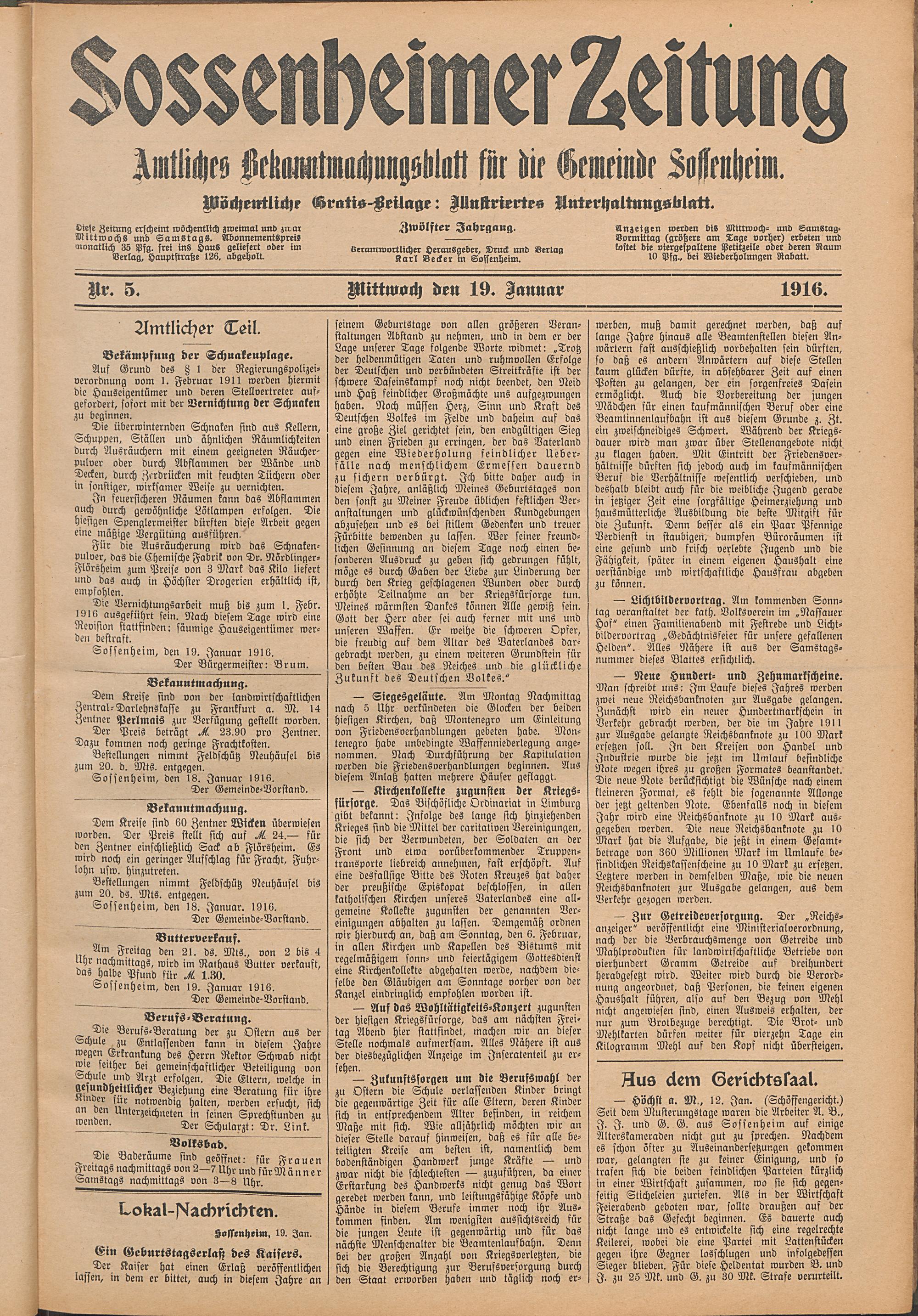 Regionale Zeitungen aus der Zeit des Ersten Weltkrieges