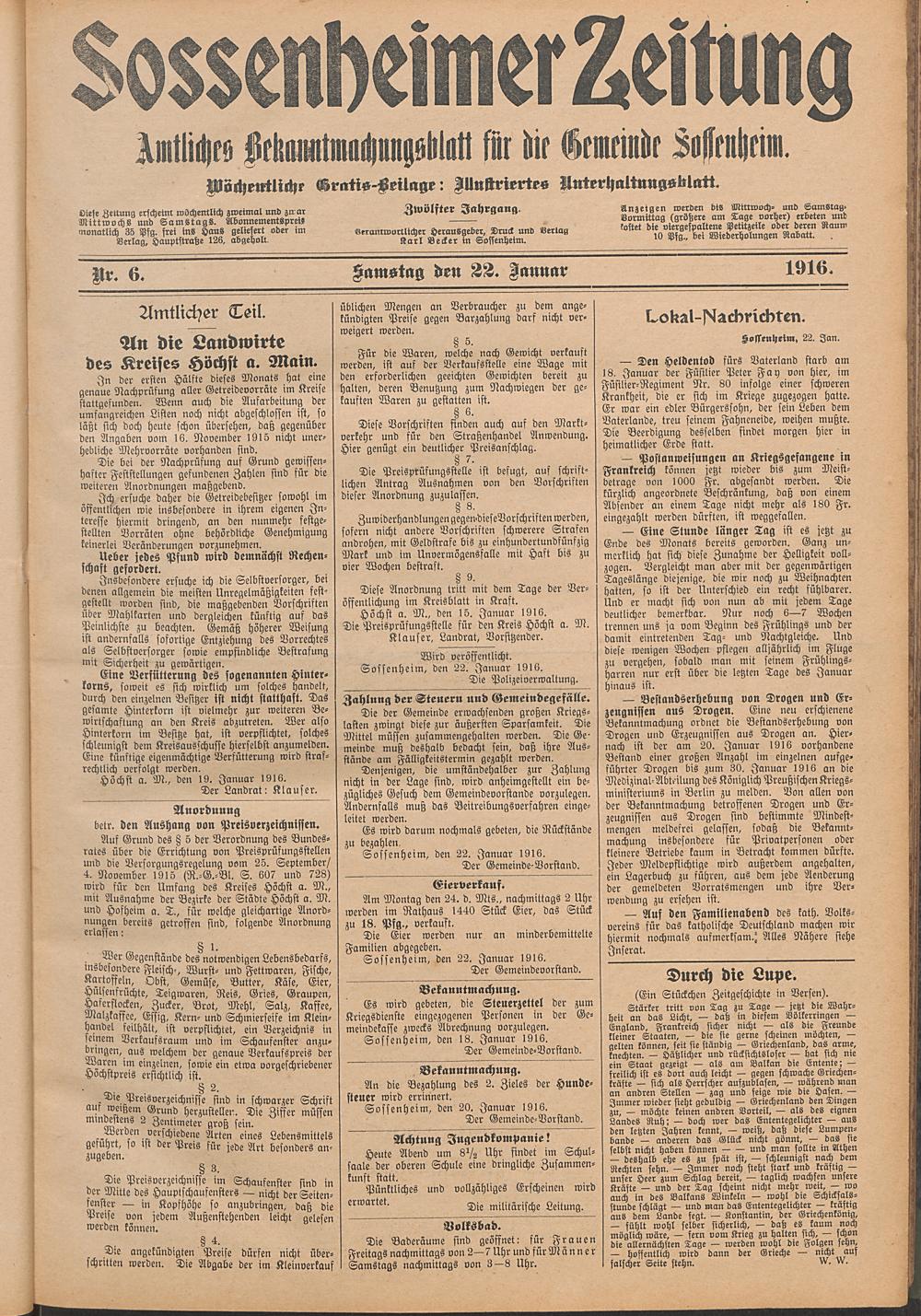 Regionale Zeitungen aus der Zeit des Ersten Weltkrieges