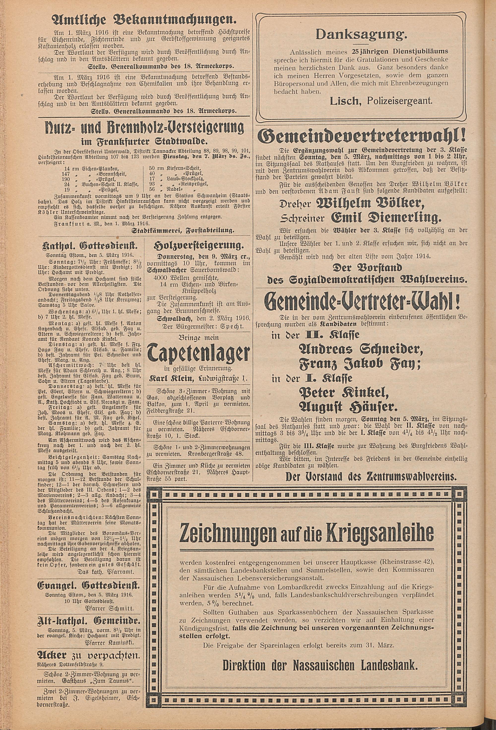Regionale Zeitungen aus der Zeit des Ersten Weltkrieges