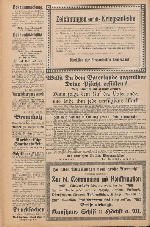 Regionale Zeitungen aus der Zeit des Ersten Weltkrieges