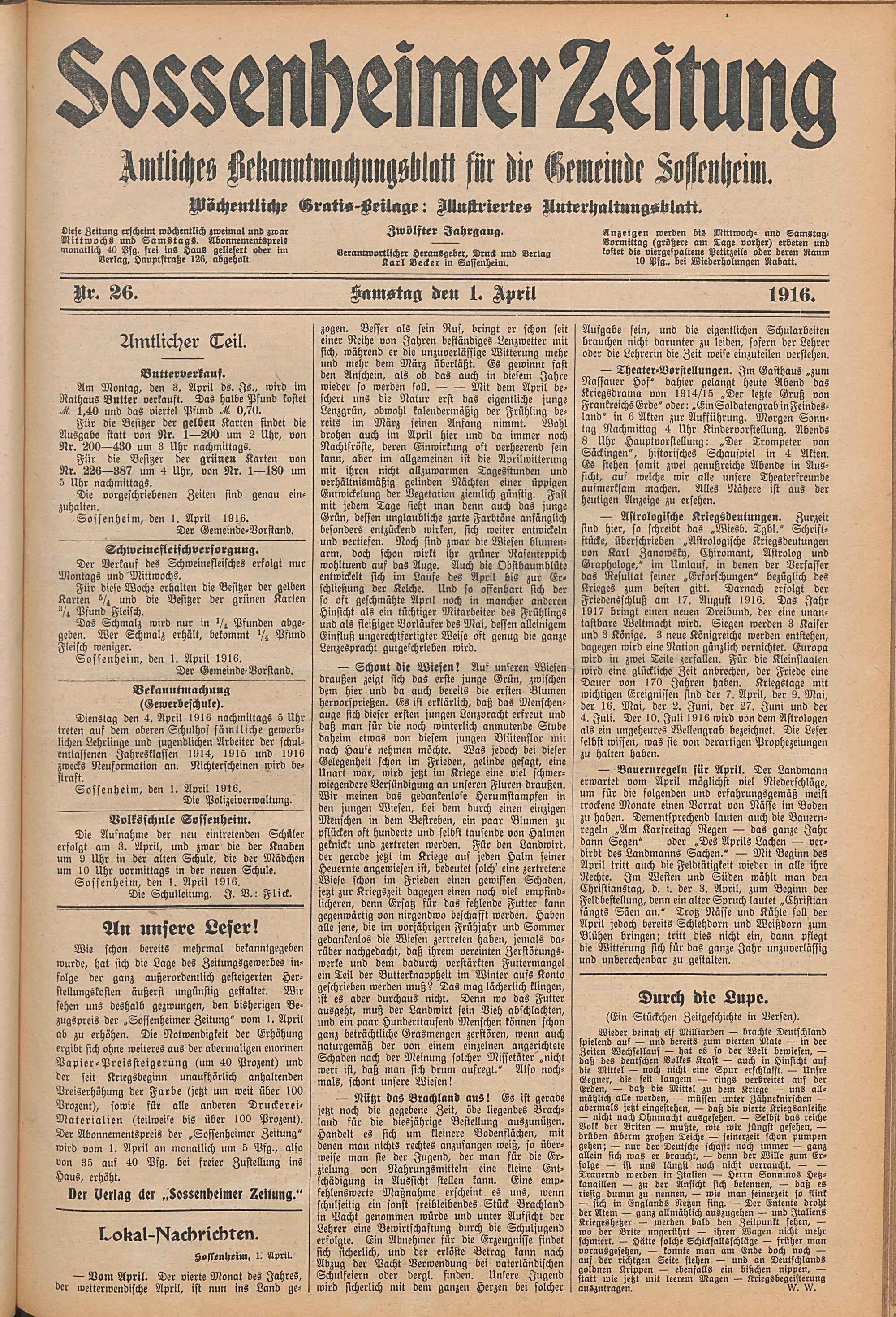 Sossenheimer Zeitung. 1906-1927