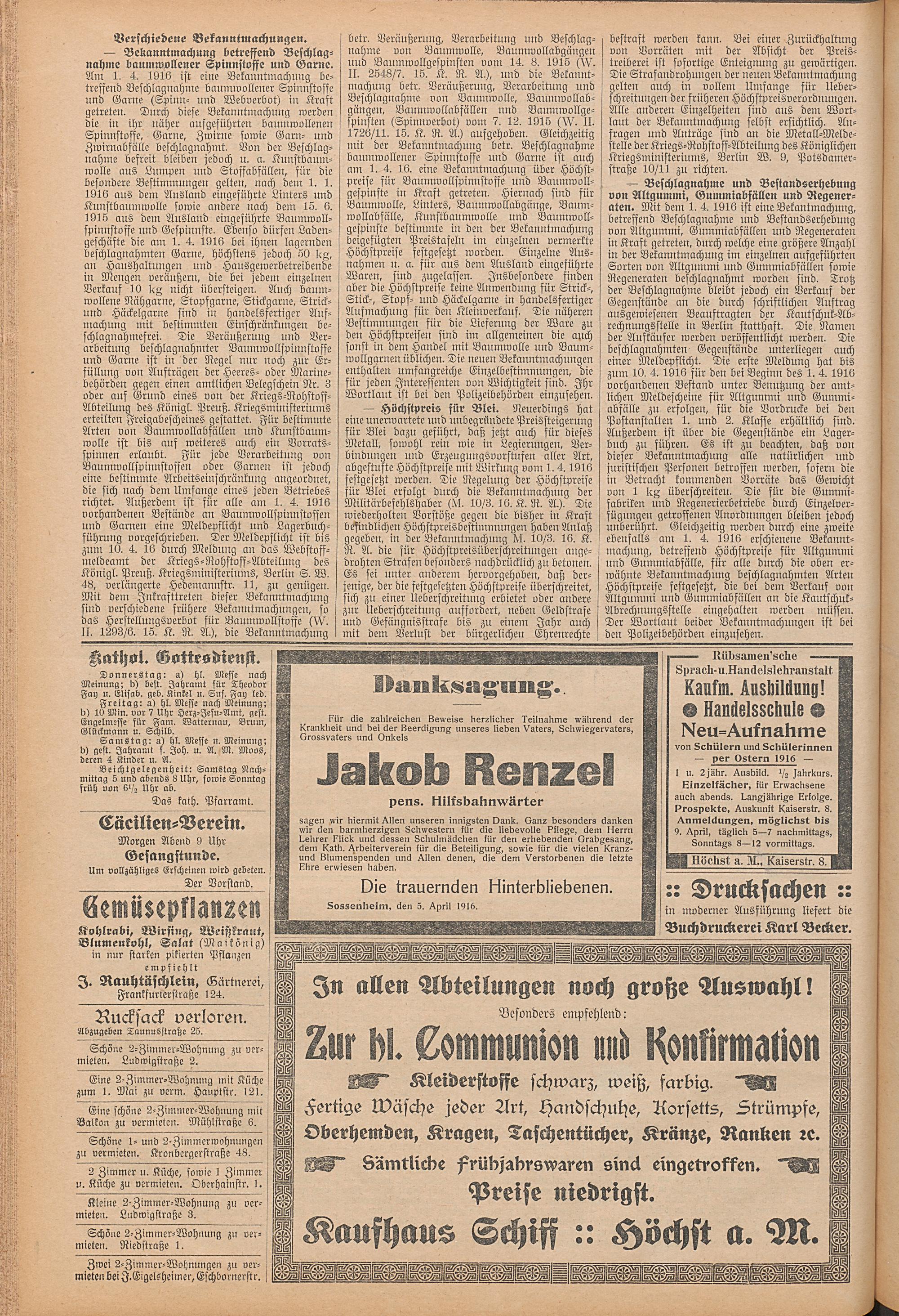 Regionale Zeitungen aus der Zeit des Ersten Weltkrieges