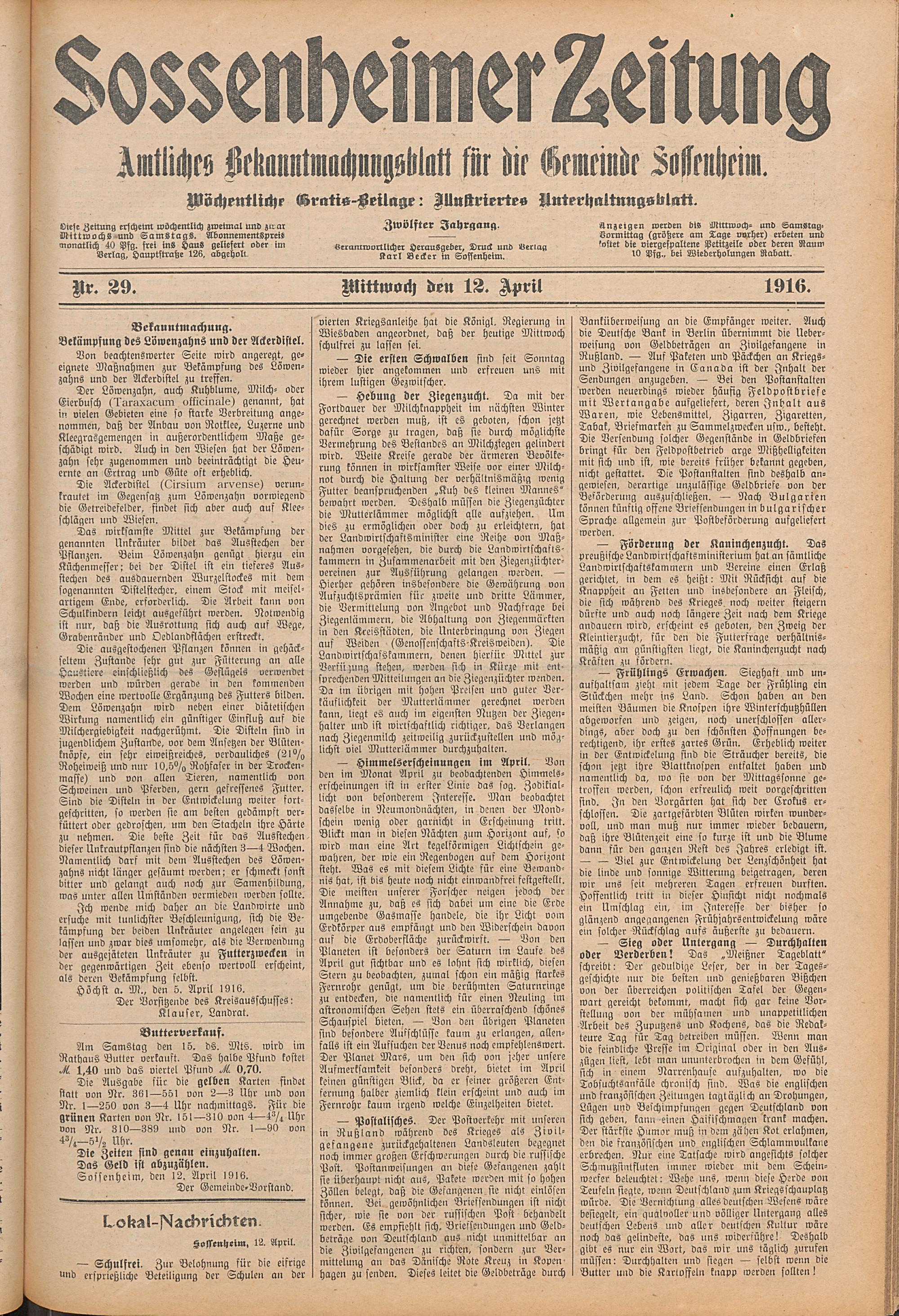 Sossenheimer Zeitung. 1906-1927