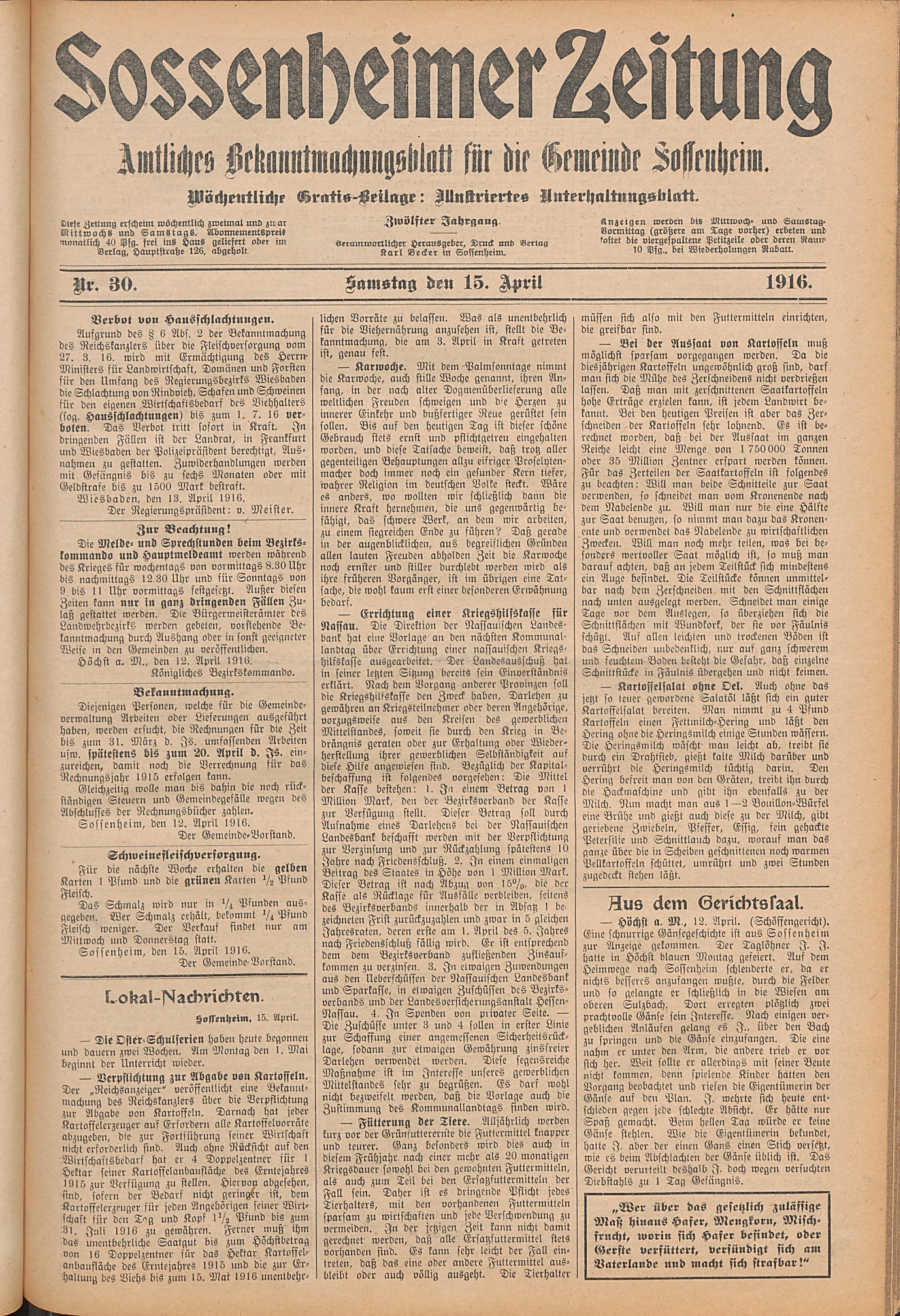 Regionale Zeitungen aus der Zeit des Ersten Weltkrieges
