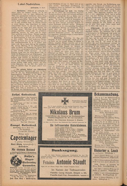 Regionale Zeitungen aus der Zeit des Ersten Weltkrieges