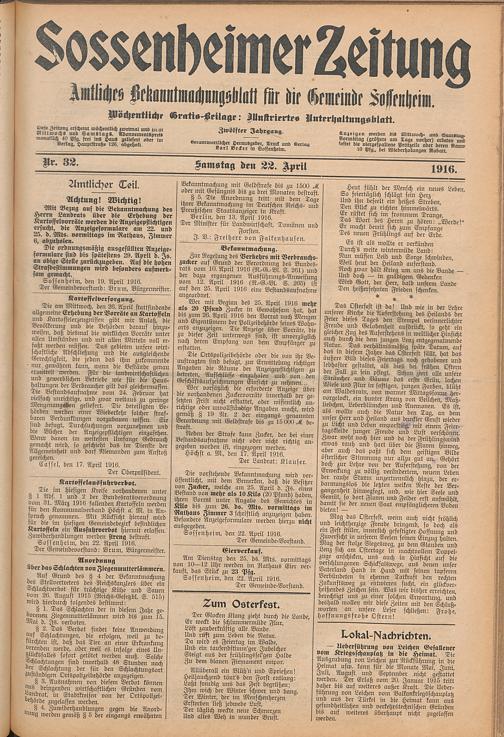 Regionale Zeitungen aus der Zeit des Ersten Weltkrieges