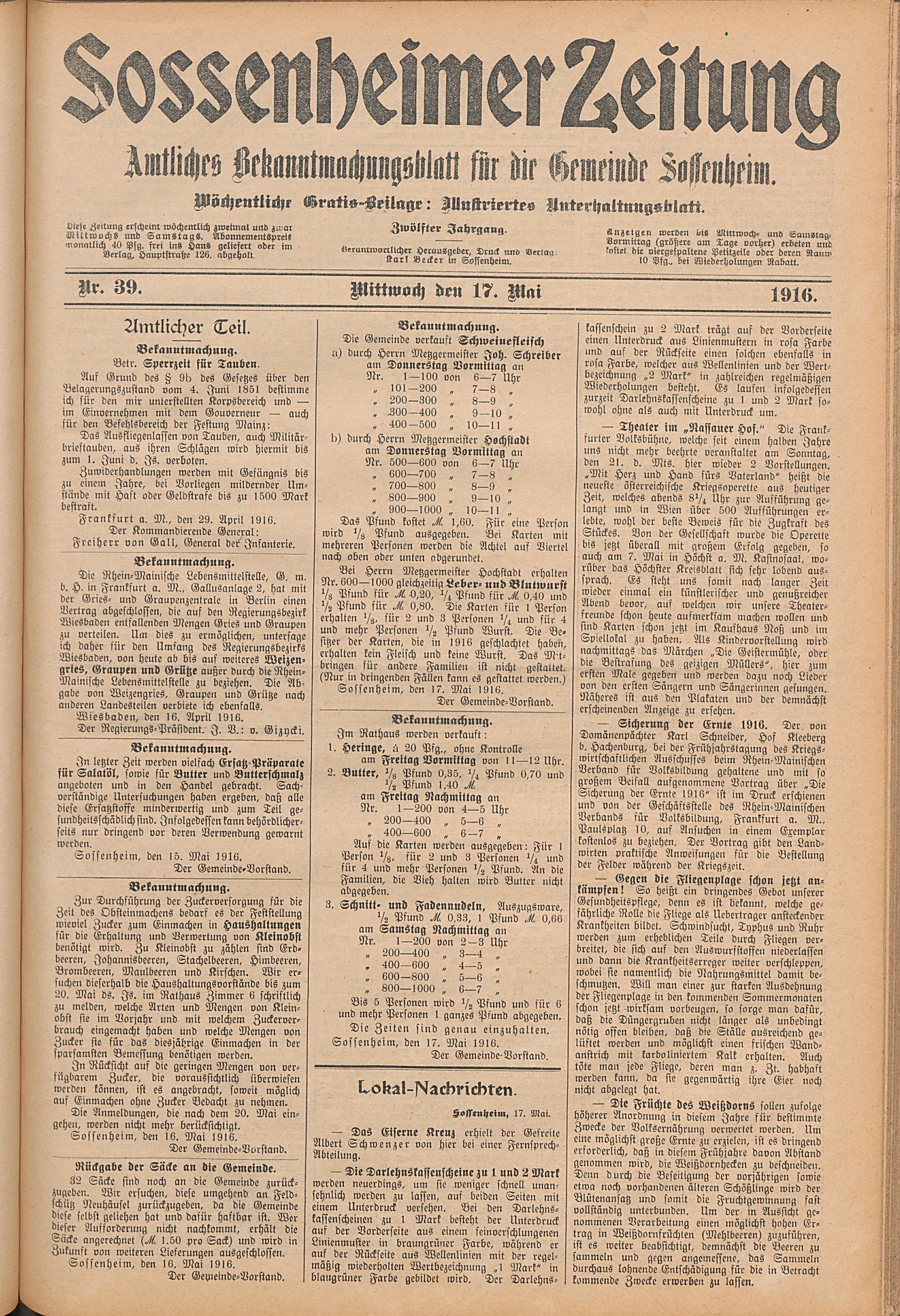 Sossenheimer Zeitung. 1906-1927