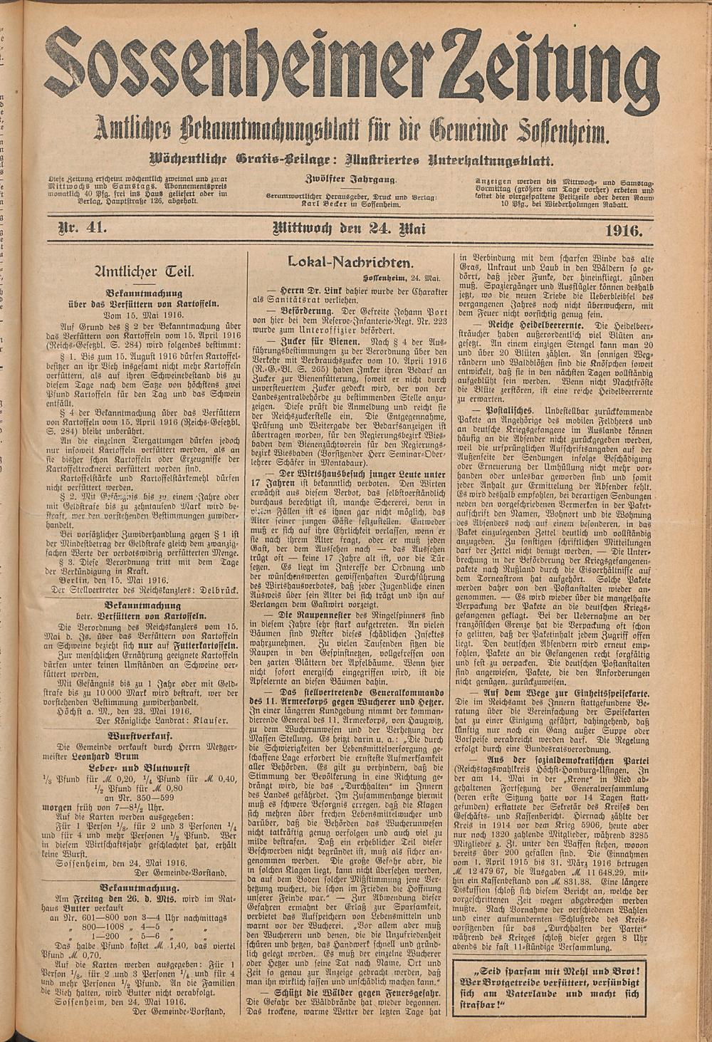 Regionale Zeitungen aus der Zeit des Ersten Weltkrieges
