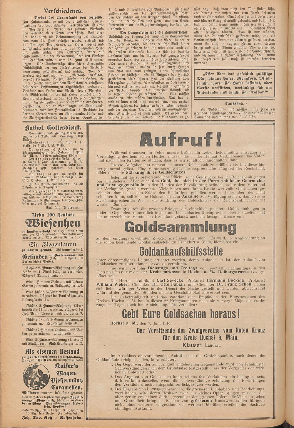 Regionale Zeitungen aus der Zeit des Ersten Weltkrieges