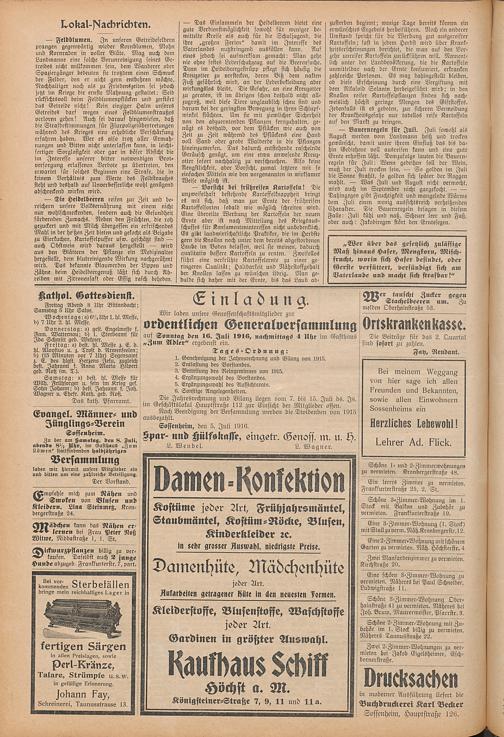 Regionale Zeitungen aus der Zeit des Ersten Weltkrieges